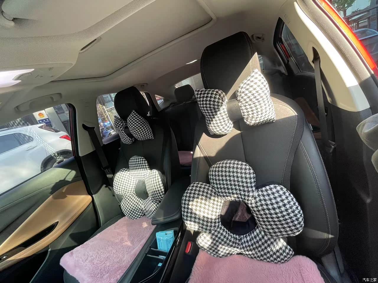 内是很喜欢,我自己配了一点装饰,很少女很好看。双联屏也是很喜欢,觉得很高级,不太喜欢传统的内饰,喜欢有科技感的。全黑的内饰永不过时。