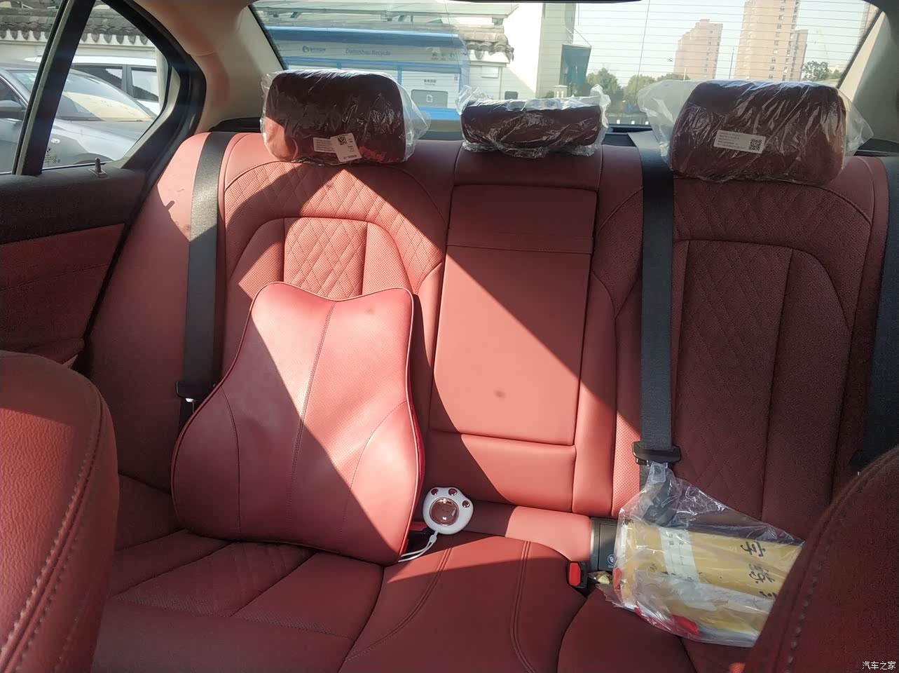 绛红色的座椅颜色很是喜欢,大气稳重而不失典雅,软硬适度,用料有档次,氛围灯配着音乐相当有感觉。空调前后通风恰当好处,清新感也很好。