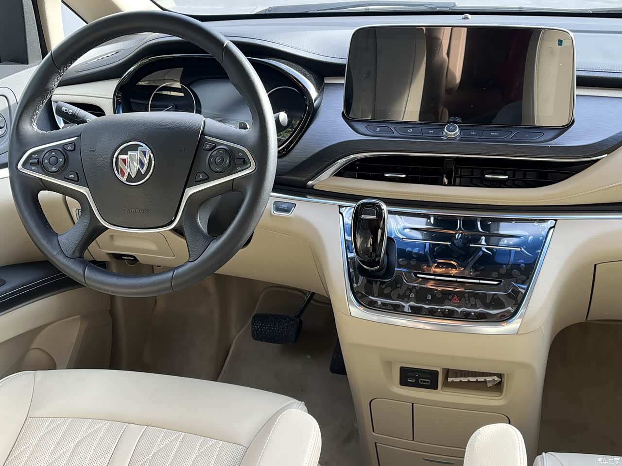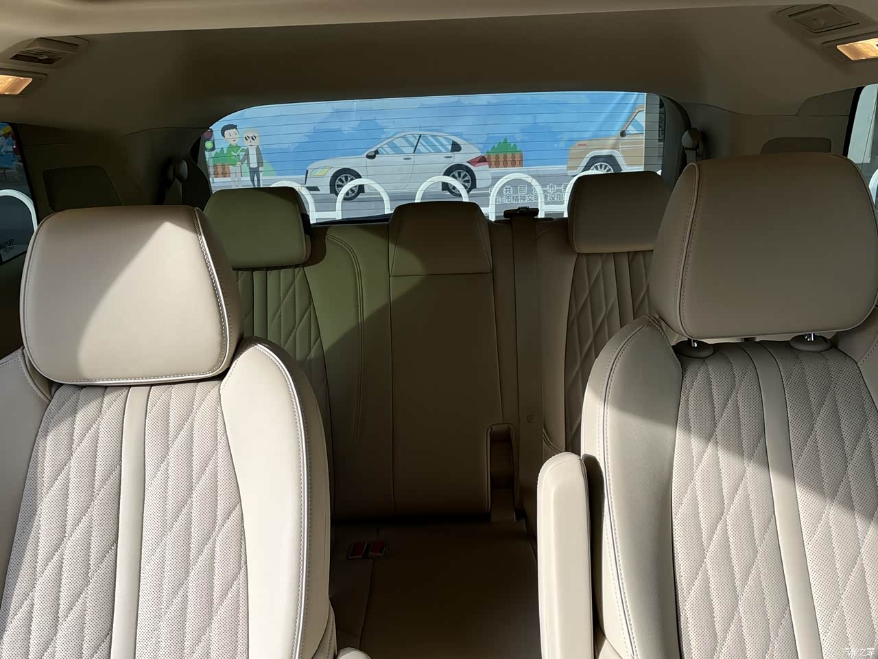 皮质座椅内饰整体是米色,显得很亲和,而且光线感比较好,不沉闷,平时拉客户还是得清清爽爽的