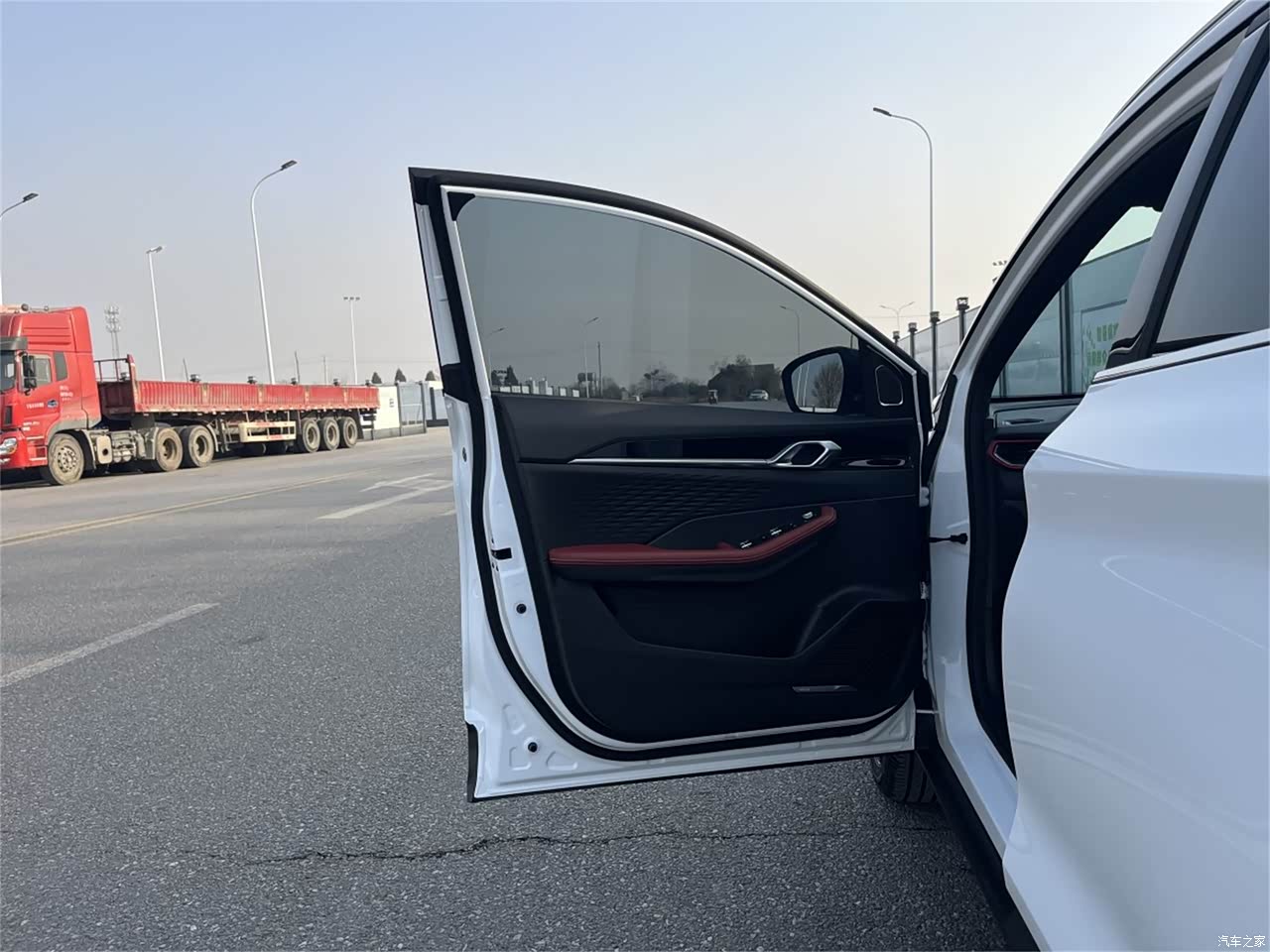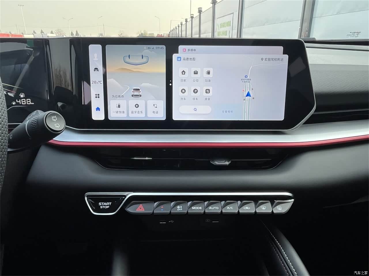 年轻造型走的是科技运动风,双联屏造型好看,用起来也方便。大多数地方都使用的软质材料包裹,没有那种廉价的感觉。中控上从左到右贯穿的银色+红色饰板算是点睛之笔,让内饰显得更年轻。
