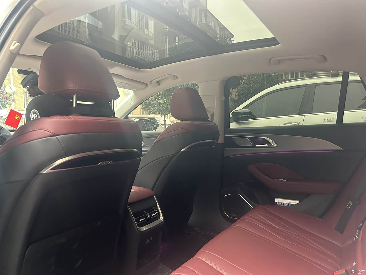 内饰的话我选的是红色内饰,反正特别喜欢这个颜色,很骚气,哈哈哈,材质的话是真皮的摸着也很舒服,充点的话前排充电稍微有点慢,无线充电手机放久了会发热,基本就相当于正常充电速度吧,后排充电非常快,所以我很多时候都是插在后排充电