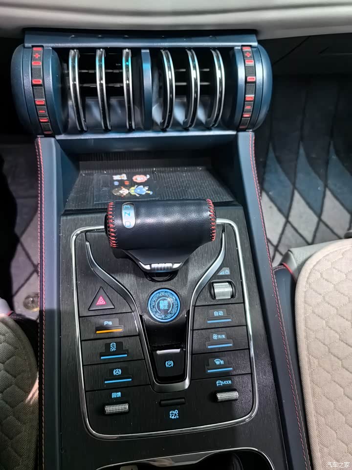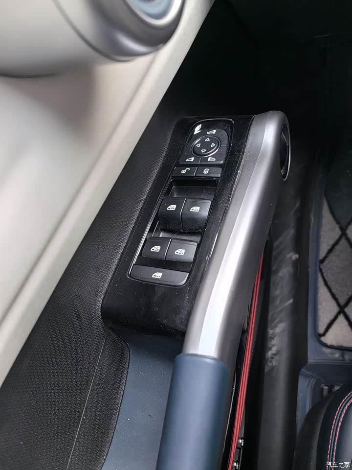 内饰吐槽一点,就是图片中的这个角角,磕到膝盖上真疼,哈哈。这个主驾驶玻璃升降按钮有点靠前,有时候盲开窗的时候,容易按错将后车窗打开。刚提车的时候,内饰夸张的设计有点难以接受,现在习惯了,也就不在乎了