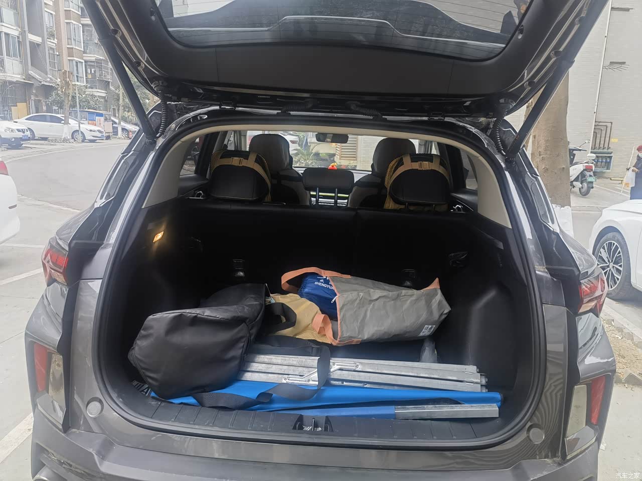 后备箱的空间刚好适合我这种钓鱼新手,可以把装备全部放下,同时家用的话也可以,网吧清仓时,去拉一个电竞椅还是可以放下去的这点很满意。