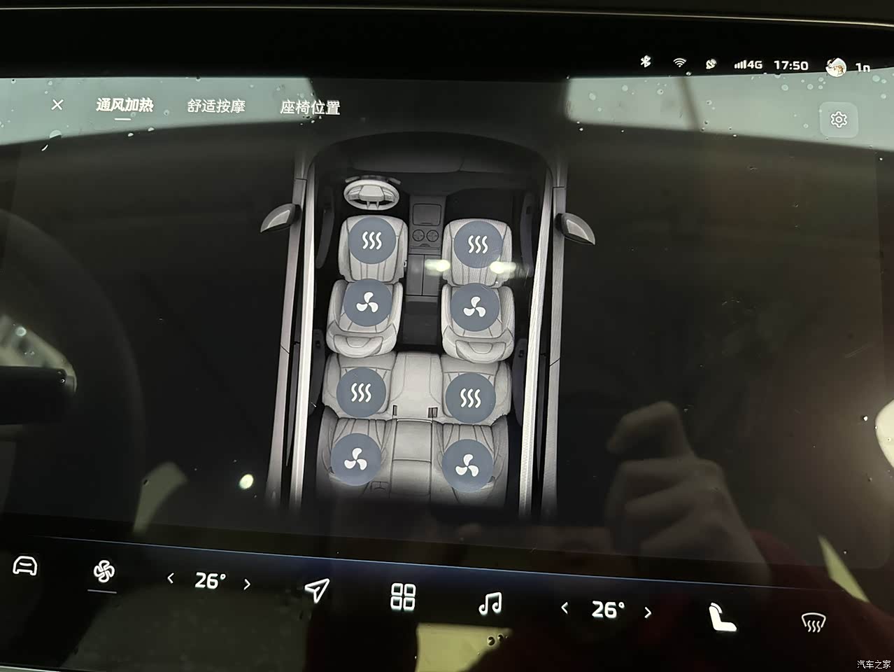 内饰选择了白色内饰,虽然黑色和棕色更耐脏,但是为了颜值那只能忍受一下勤打理了。主驾和副驾有座椅按摩,工作了一天开车的时候顺势按一下还是很舒服的。前后四座都配有座椅通风和加热,冬天夏天的乘坐体验更好一些。
