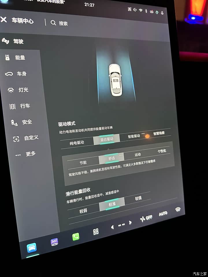 车机真的不卡,我也没遇到过死机重启现象,360全景和透明底盘非常实用,而且在陡坡和低速打转向灯它还会自动弹出360,避免很多驾驶风险;语音助手识别率很高,目前说普通话情况下还没出现过识别错误啥的,平时开车不动手也能开个导航和空调啥的;最后车机内可选的驱动模式极其多,光是大类都有4种,4种驱动模式下,还能进行自定义很多设置,这你受得了么?