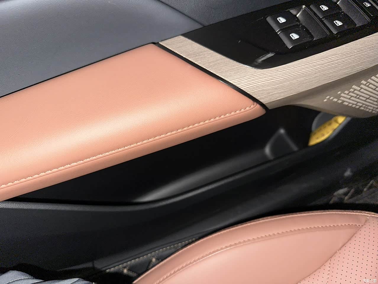 内饰我选的是赤堤红,颜色比较温馨,也很耐脏,大部分能摸到的地方都是皮质软包,门板和中控部分还有木纹饰板,简约又不失高级
