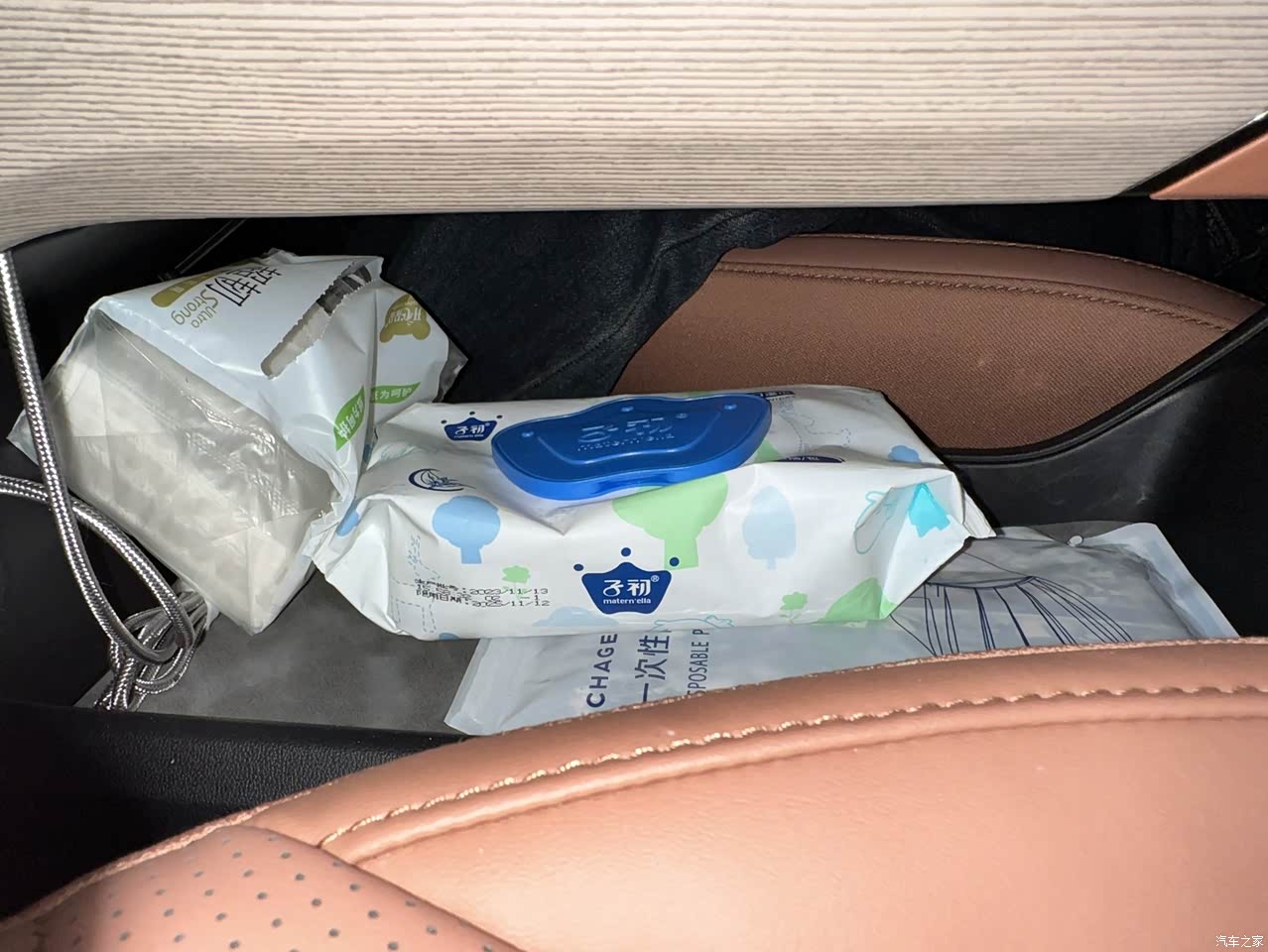 中控下方储物挺大,放个大包包和纸巾完全没压力,然后门板储物格目测也能放很多瓶矿泉水