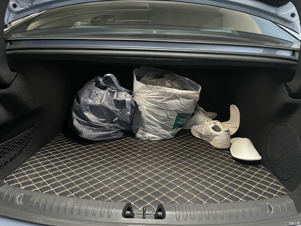 后备箱设计的还挺大,上次去出差拍的这张图,可以看到,里面东西随便放,空间很足。不足的地方也有,就是后备箱有一个槛,每次放重物的话,还挺麻烦,尤其是取出来的时候。估计设计是为了更大的空间,所以没有做到和槛一样高,表示理解。