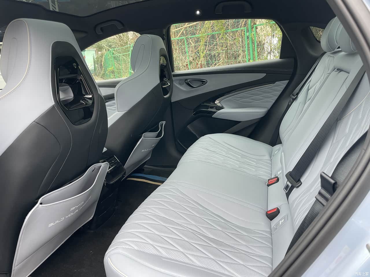 2920的轴距,空间是真大,很多桥车诟病的后排空间,在海豹上面却表现非常不错,虽然中间位置小一点,但是两边的位置很大,中间拼接的地方处理的很好,所以坐三个人既不显得拥挤,乘坐起来也挺舒服的。