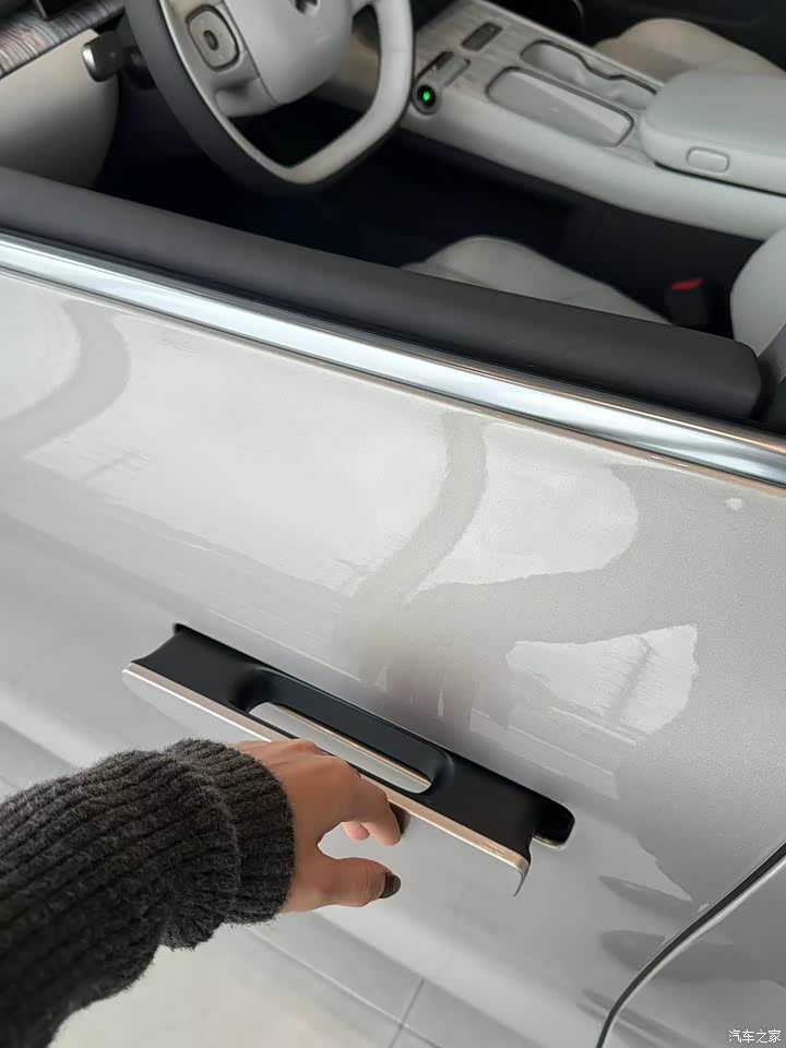 再说一个细节: 很多人会躺在车里休息,而蔚来的工程师在B柱这里做了一个小小的平台,供你半躺时放胳膊。这个小细节说明蔚来的设计师对用户的洞察,已经对用户体验的极端重视一一哪怕是个极细微的细节。 我相信很多车厂都注意到车主们会有这样的场景,但真不一定有动力去真做这么个放胳膊时的小平台