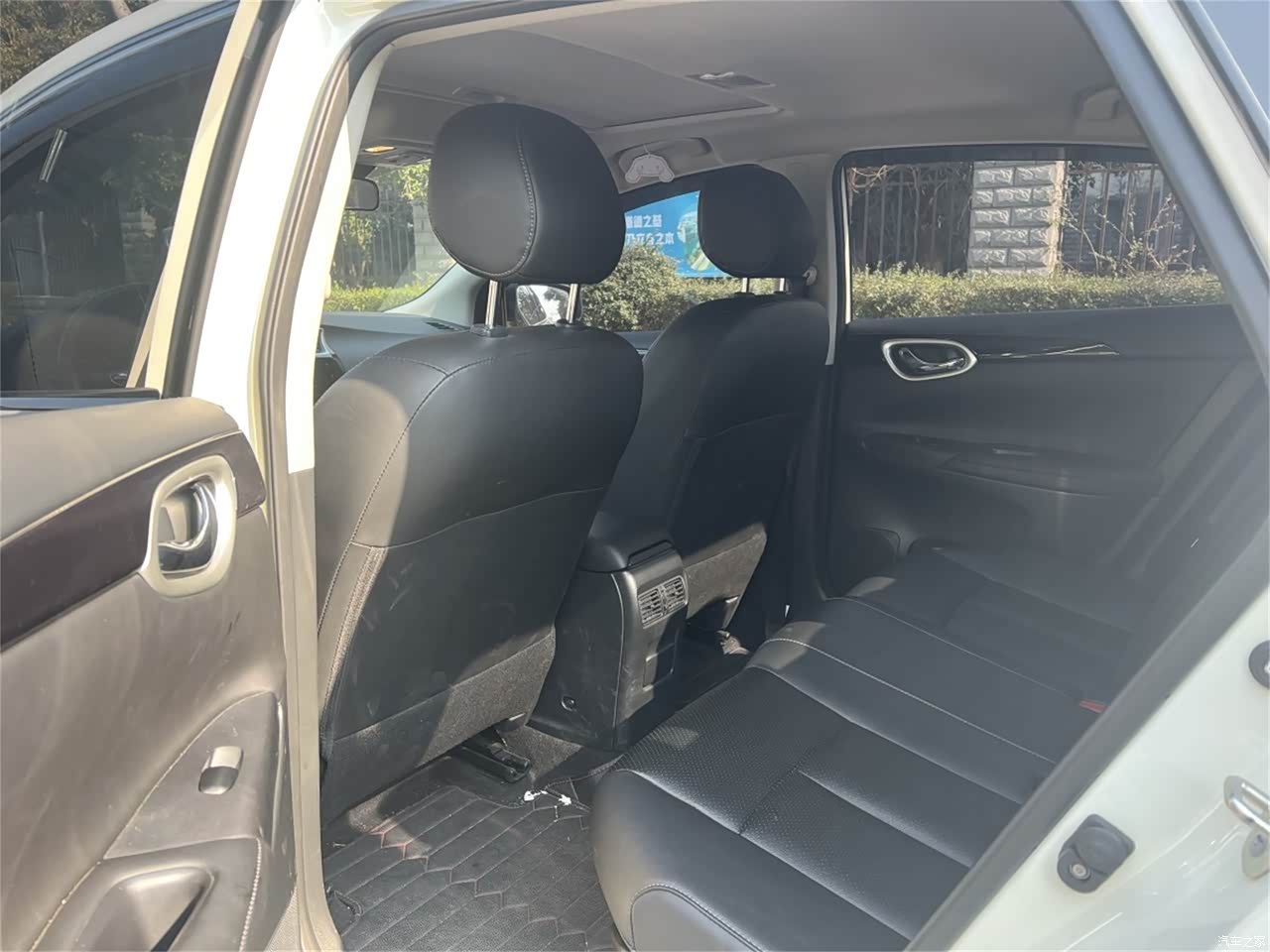 车内的空间还是非常宽敞的,毕竟轩逸主打的是舒适和家用。座椅软,前后排还都带中央扶手,后排中央扶手很宽,也很长,就是有点偏低,不过也还算可以,当然高点会更好。本人身高172,在后排翘着二郎腿都没问题,头顶的空间也足够。后备箱空间也很大,能放很多东西,不错不错!!