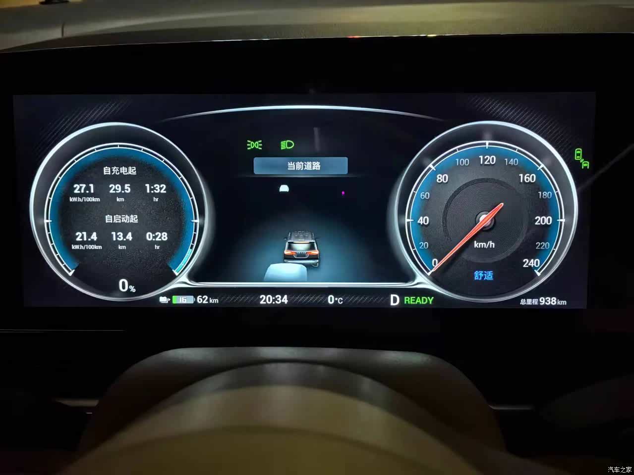 它的电池大小为82.11kwh,官方CLTC续航510公里。我所处城市是郑州,冬天提的车,现在还没上过高速,全是市区出行,在-3°C至11°C气温之间,平均电耗在20至30kw.h/100KM之间。具有参考价值的其实是它的工况里程,1月28日,车外温度在-3°C至11°C之间,电量99%,车辆显示温度为8°C,工况里程显示418公里,我觉得这种天气,市区50km/h左右的速度开350至400公里问题不大。