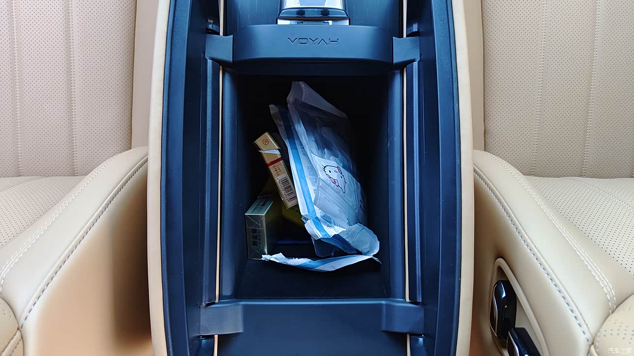 中央扶手箱比较大,能放很多东西,尺寸24×23×16厘米,水杯架6个。