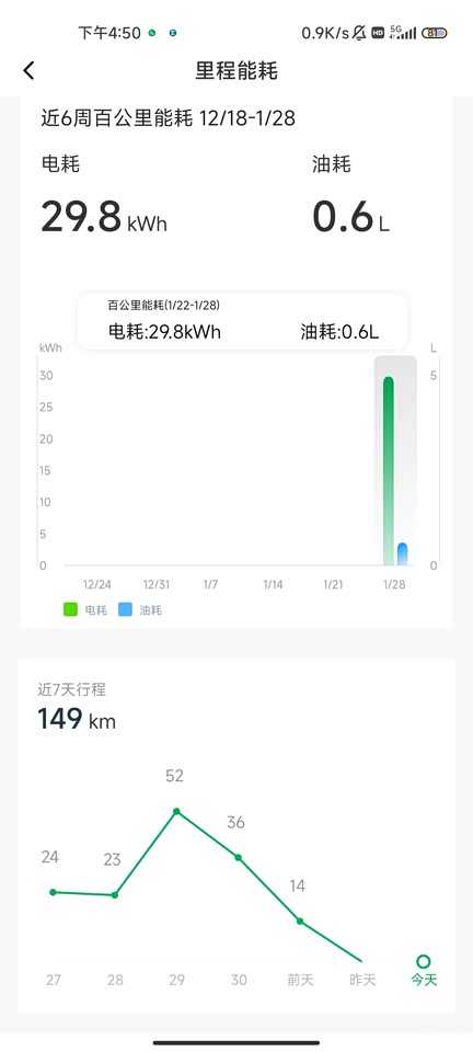 在晋南用车,盆地,前几天没下雪的时候零度左右,跑起来了续航还行,放着的话掉电不少,经常需要预热电池。跑了一趟高速二百多公里,的具体我没算,中间充了一次电还用了八十公里的油。平时在市区跑表显平均电耗20出头,加上预热车空调啥的就到30了。