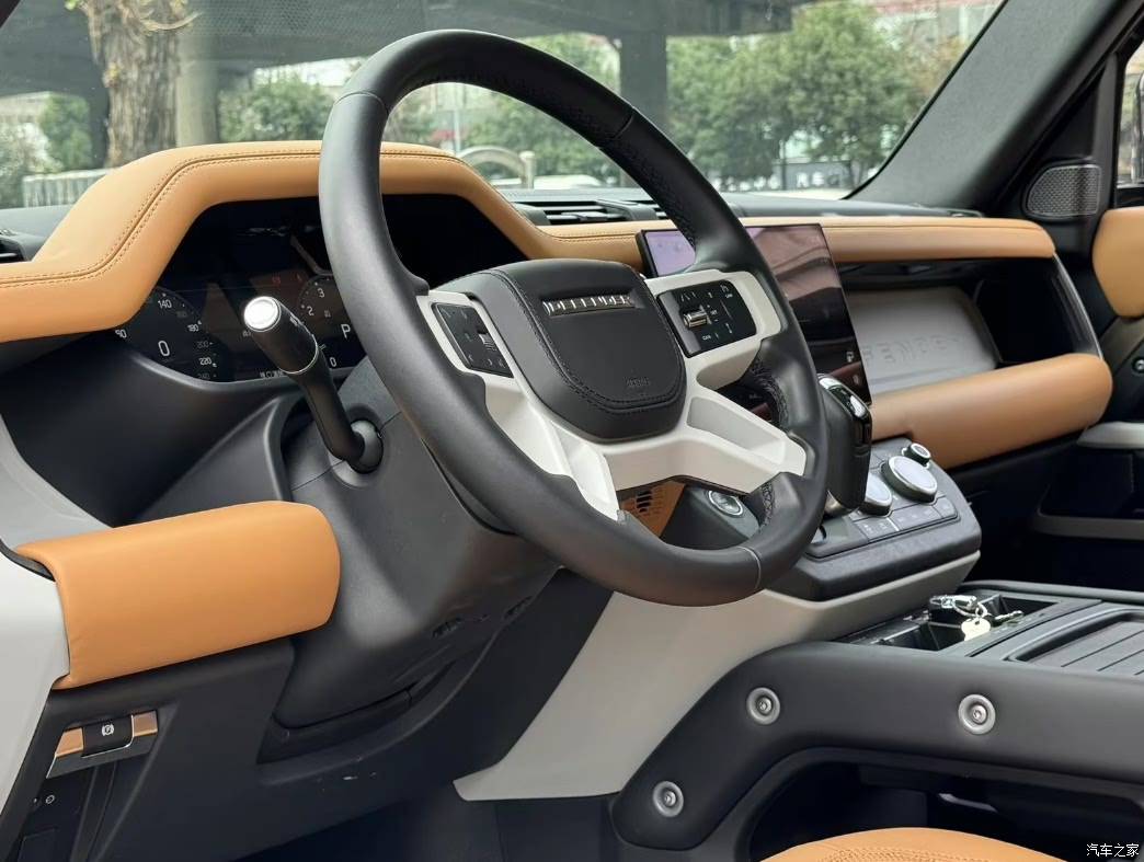 内饰的设计理念我觉得很有碰撞感,这辆车内饰给我的感觉是既有硬派越野的氛围,又有满满的高级奢华感,内饰很漂亮。大部分元素都是方方正正的造型,看起来还是很简约精致的。门板上的铆钉设计很特别,算是同价位里面独一例的存在,这样看起来特别有那种原始硬汉越野的气质,很有格调。内饰经常碰到的地方几乎都用了皮质去包裹,摸起来很柔软细腻,用料很讲究。方向盘很大,而且也很厚实,握起来很饱满,造型也很帅,颜色用的也很时尚。中控区域还保留了很多按键设计,这点我很喜欢,我觉得实体按键比触摸屏更可靠,用起来也更顺手方便,学习成本很低,我更喜欢这种实体按键。内饰整体来说很精致耐看,也很有豪华感。