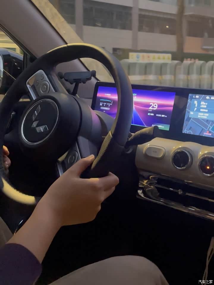 内饰复古色,皮革覆盖面积还是蛮大的。坐垫较五菱其他车型来看肯定是有所升级的,坐着还是蛮舒服的,软但有支撑力,也不至于特别硬。