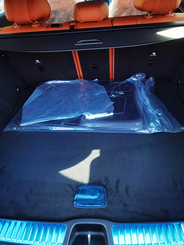 奔驰由于怀挡的设计,驾驶位手扶箱的储物空间绝对够用,如果在左手侧有个小储物盒,放个行驶证,卡包,零钱的话,那就更好了,可惜没有,右手侧两个储物盒,充电插头,都有设计,诚意满满,好评。 来到后备箱的角度,家用无敌啊,硕大的后备箱能够很好的满足出行需求,我的车是五座的,可以放平第二排的座椅,铺上两层被子,能躺开两个身高165的孩子,宽敞得很,对于长途旅行休息一下,也是很不错的,更为让人吃惊的是,由于没有备胎,在后备箱隔板下面,还有一层空间,如图所示,你就说想放什么吧,太大了,好评! 如果是七座的话,后备箱就别想了,把后排放倒了也确实了隔板下面的空间,本人不是很满意,不是刚需,不建议七座。
