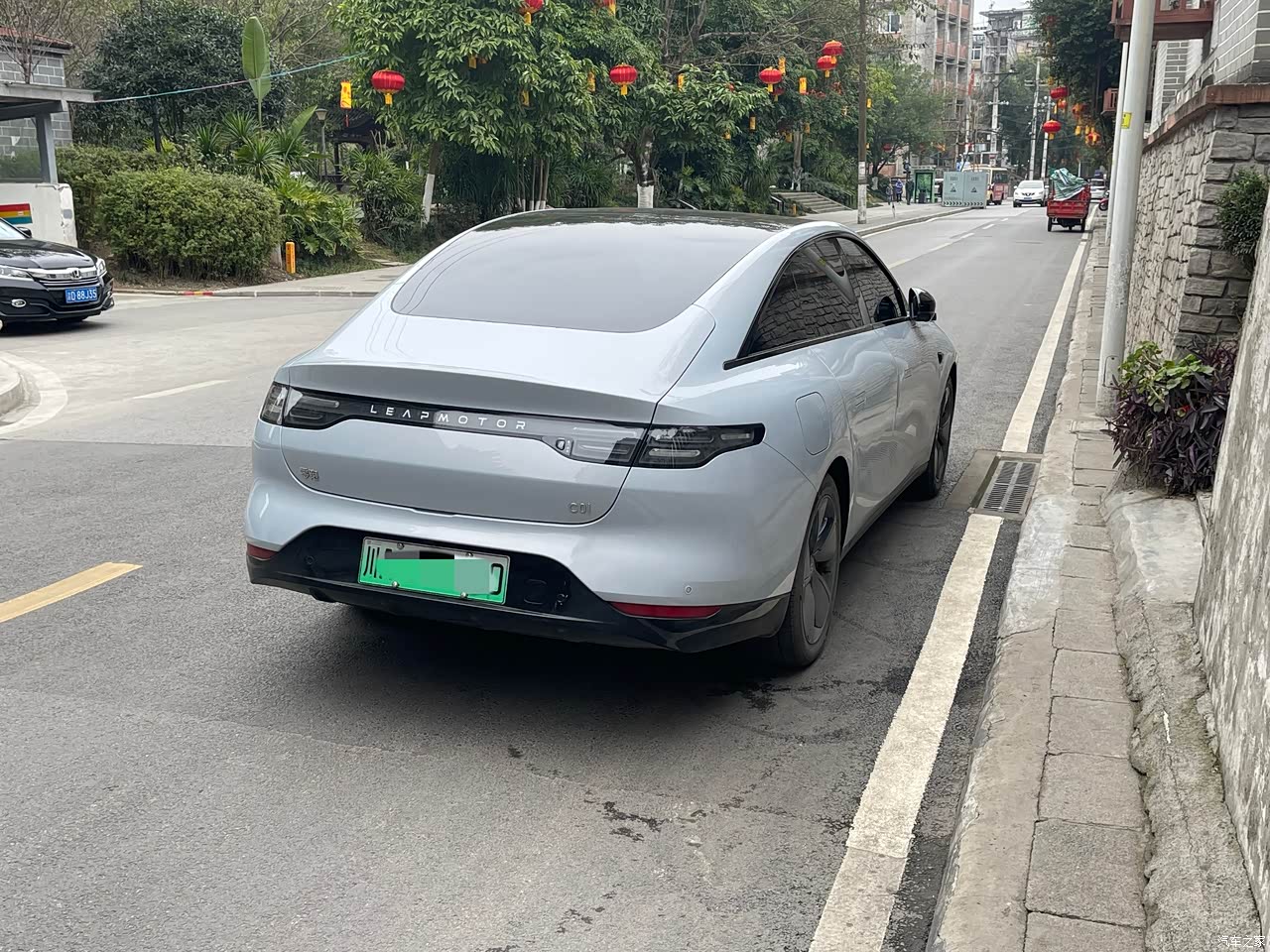 由于我之前对零跑这个品牌还不是特别的了解,所以去4s店都去了三趟。之前都是停留在外观上面,这个车的外观我确实是很中意的,我媳妇也喜欢,不论是男士还是小姐姐开都不过时。前面是贯穿式的大灯,走在了流行前沿。上牌照那一圈的线条凹凸有致,特别灵动。尾灯和前大灯呼应,还有零跑的英文字样在里面很有意思。侧面看车子是比较矮长的,有一股清新脱俗的风格。