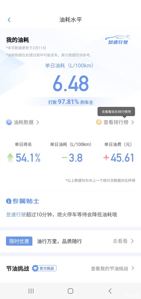 买这辆车之前,我在网上看了很多资料,多数都说这车这不行那不行,包括油耗。买了以后,开到现在,我最低开过百公里4.2个油,一般油耗都能控制在7个以下,我的秘诀就是匀速,不暴力驾驶,包括纯市区,30公里以下的低速,只要匀速驾驶,一样不会超过8个油。