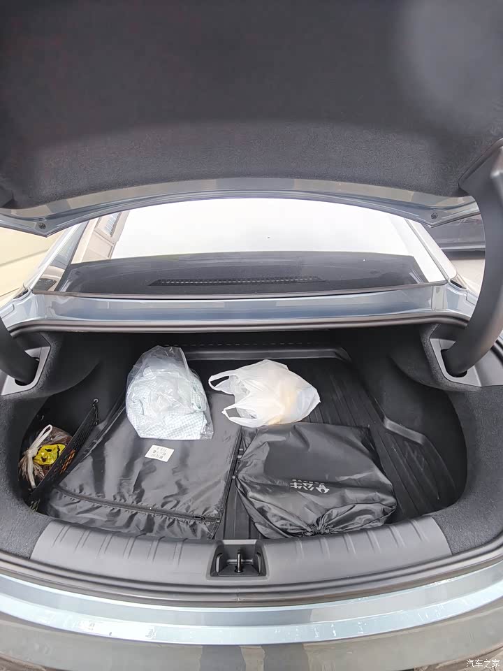 我身高1.75米,体重83kg,把前排座椅高度调到中高+向后,大腿和腰部的舒适度刚刚好,头部空间足够(我还加了遮阳顶棚),后排座椅的高度和我的油车比有点低,脚放近处的话大腿会腾空,需要把脚往前伸才能支撑到大腿。车内储物空间最大的地方是在中央扶手箱,里面深度很大,但没有分隔,这样太浪费了,所以我自己买了隔板,这样分类摆放物件更合理,副驾驶的手套箱比较小,基本真的是用来放手套的。后备箱是蚌壳设计,看着不大其实挺能装,纵深也很大。另外后排靠背是可以向前放倒的,放倒的方式是后排头枕旁边的皮带拉绳向上提,这个设计可以省去另一只手去拉靠背的麻烦,直接一提拉倒就行。上次带了一卷1米5长度的车衣轻松放下。