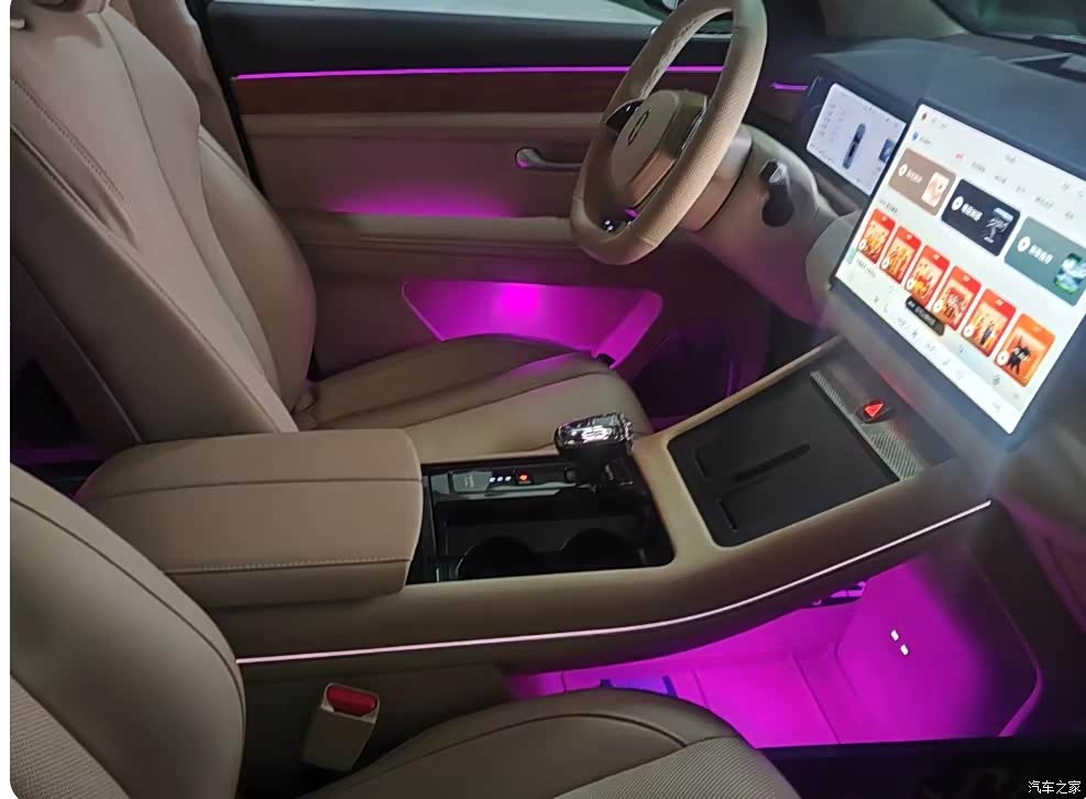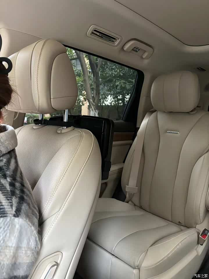 我选的是杏色内饰,本人比较爱干净,所以就选就浅色的,都是真皮的,坐着也舒服,空调效果非常好,就连第三排都有4个出风口
