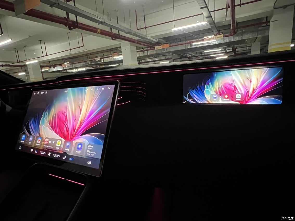 因为我是奢享版的车型,所以氛围灯是64色具有流水灯效的。夜晚的氛围灯效果还是一级棒的!可以伴随音乐律动,别具一格的体验!