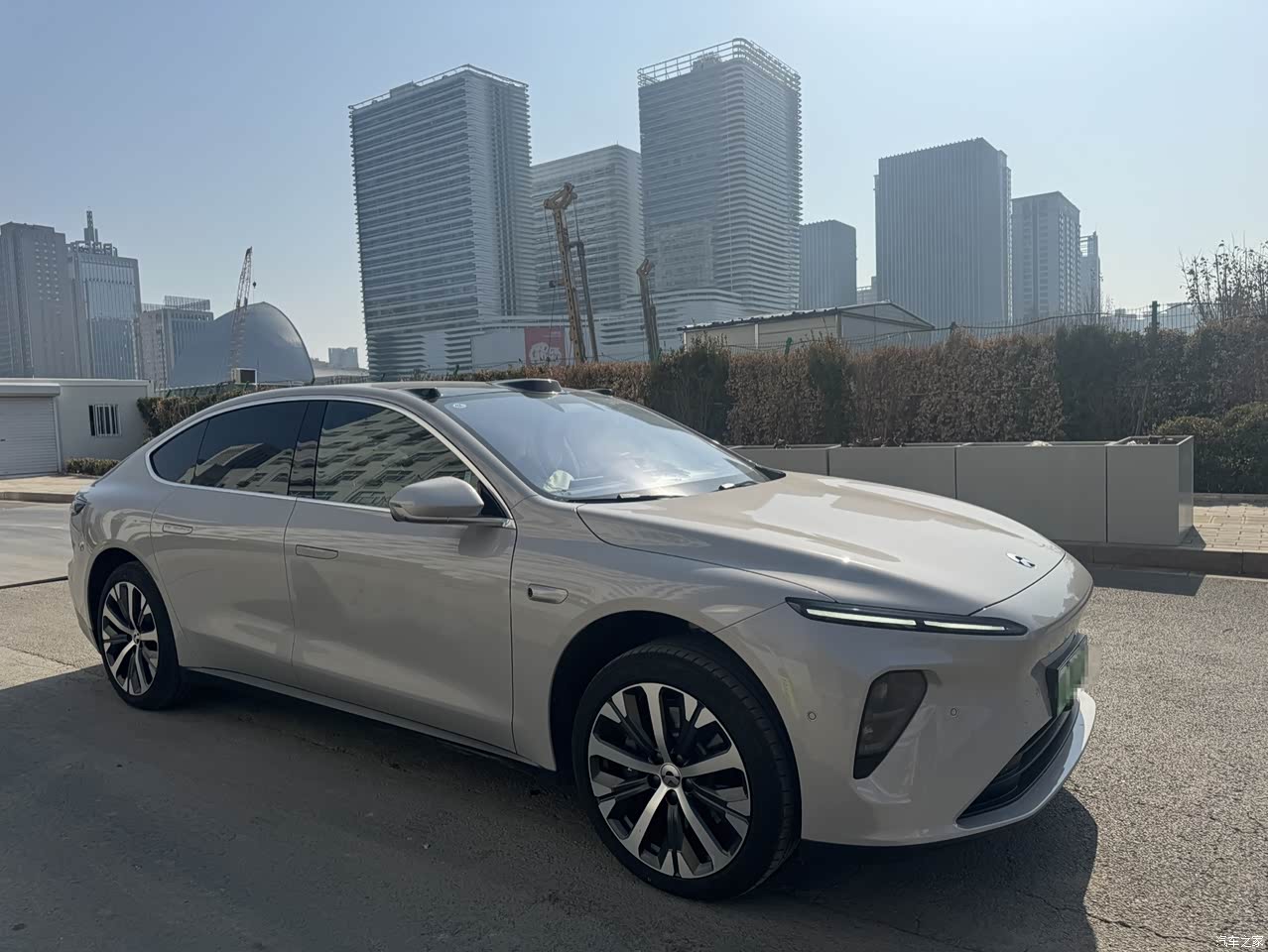 外观整体车型结构真的超级好看,流水式的车型结构,修长的车身感觉既优雅又大气。颜色我选了黎空银,ET7的专属色,很高级,也不用加钱。还选了一个20英寸的轮圈,更好看了。整体车身比较低趴,没有特别高,有气势。车顶的激光雷达凸出的我觉得很有科技感,但是好像挺多人不喜欢这个,只能说大家各有所爱了