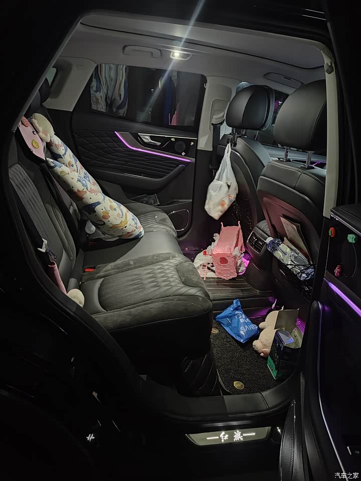 说到不满意的地方就是车内饰座椅了,它不是全皮包的,布艺的地方不太好清洁,因为有小孩经常坐后排,长途行驶中他们会吃零食或者玩玩具。有一次没注意买的史莱姆胶粘在座椅上,后面怎么都清洁不掉,这点比较愁,因为这款车座椅也配有安全气囊,不能安装座椅套。