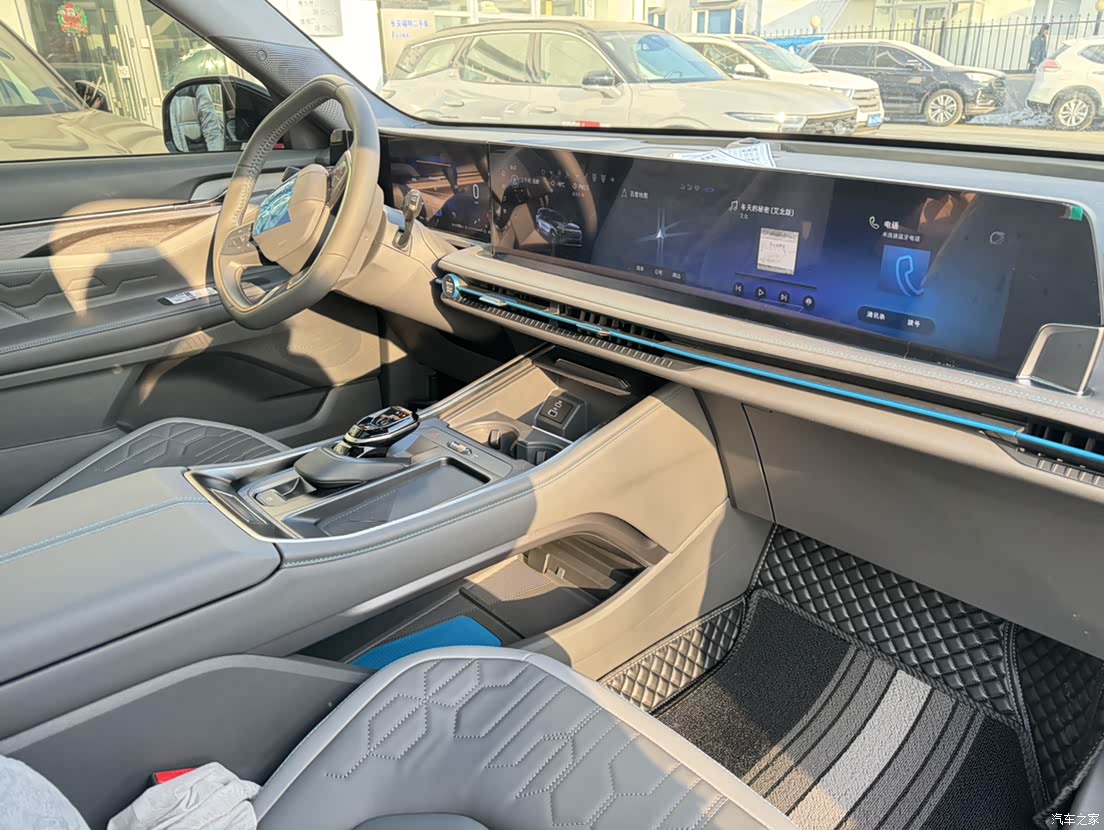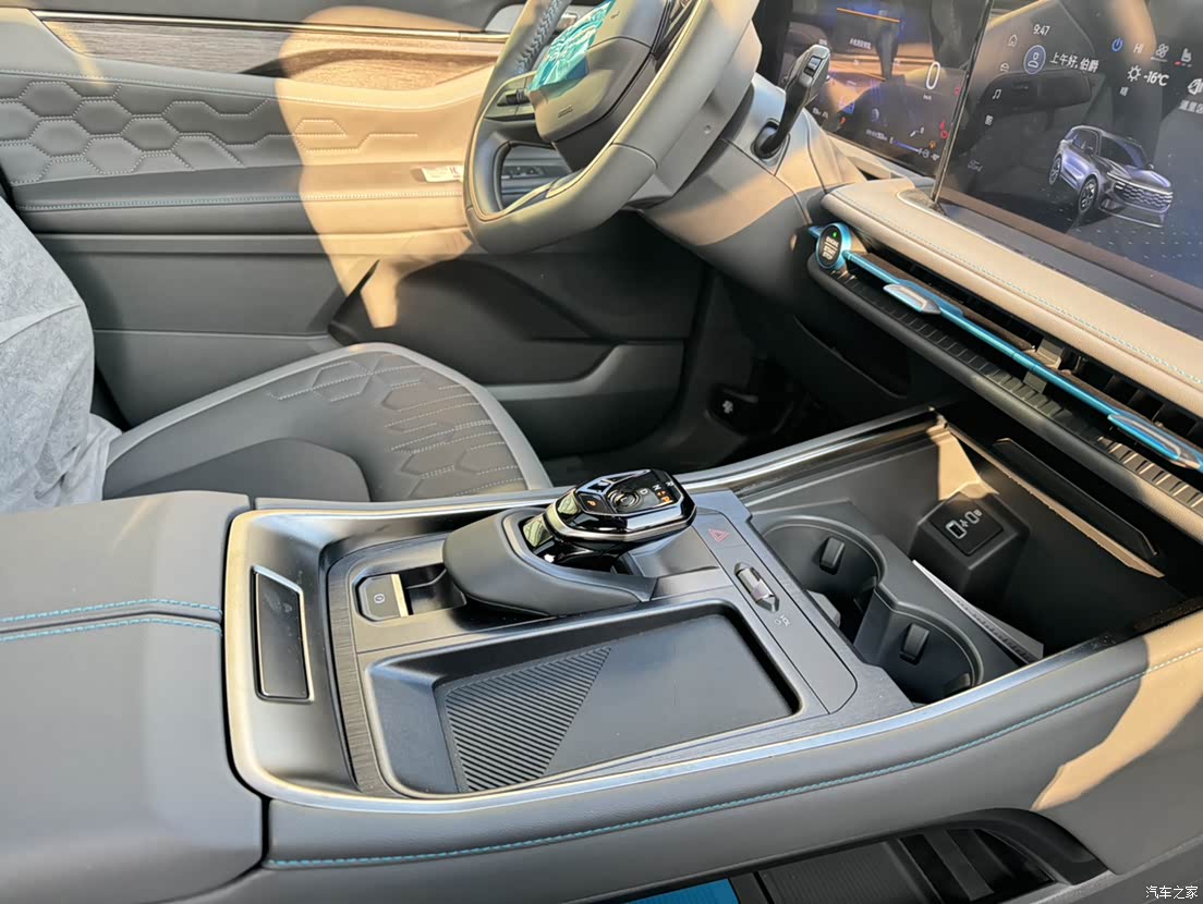 内饰座椅的做工很不错,细心一点的都能感受得到,配色也很干净,高级,什么材质我忘了问了,坐着很舒适,软硬适中,氛围灯很喜欢,可以更换颜色,还有车内的音响,效果特别好,晚上开车的时候,放着音乐,开着氛围灯,真的很享受。
