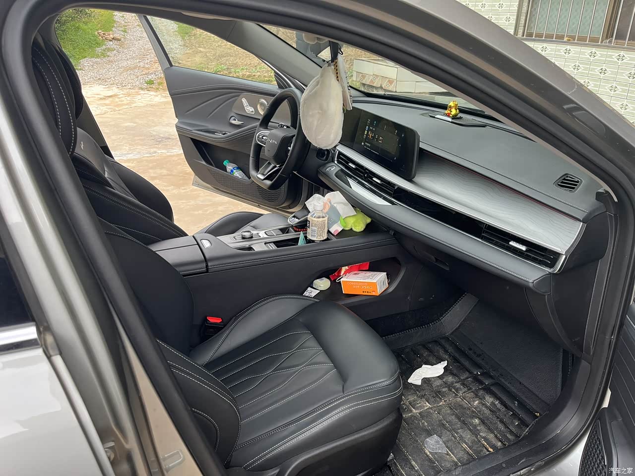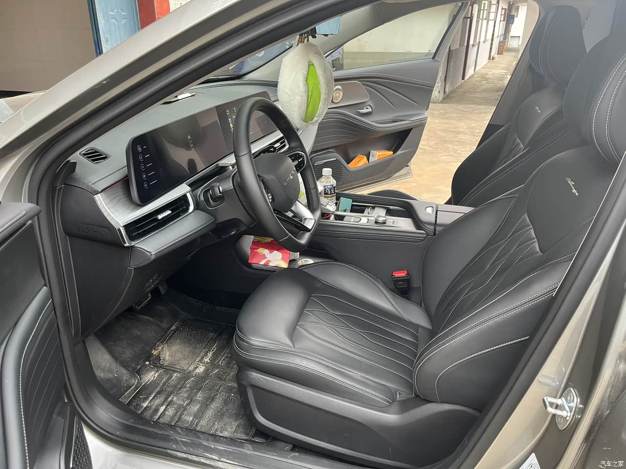 买的黑色内饰,低调一点,还方便打理,内饰做工方面也是有待加强有待加强啊!用料跟同级别合资比完胜。前排都是软包裹,后排车窗下方节省了点,换的硬的。不过玻璃升降那个位置还是软包裹。