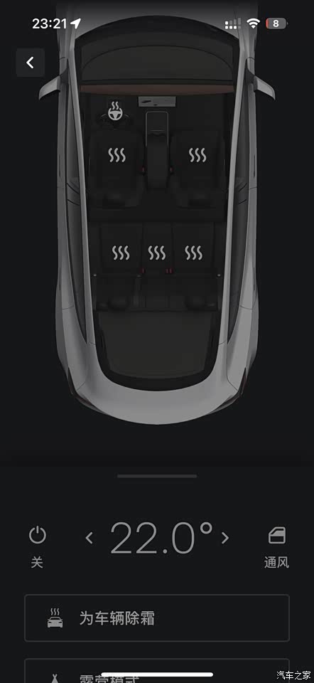 通过app能看到车辆位置,还能提前设置车内 空调温度,调节座椅加温。在沈阳的冬天,对于女生来说太友好了。