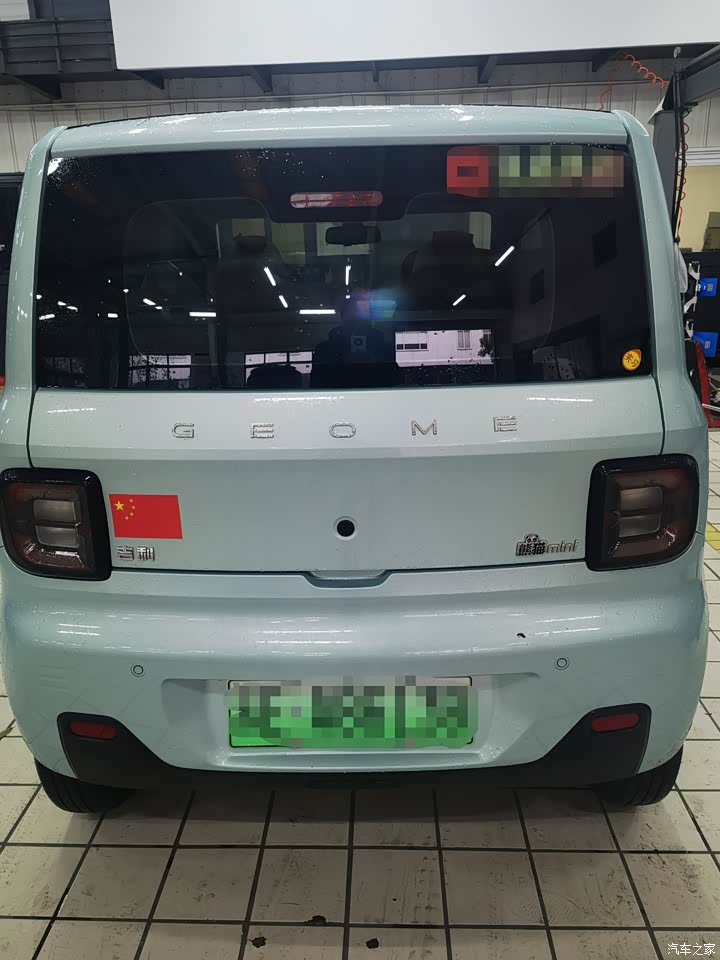 后面看上去像个面包车,没什么亮点,后面有个吉利的logo 后玻璃也不大,感觉宽度小了点,不太协调。