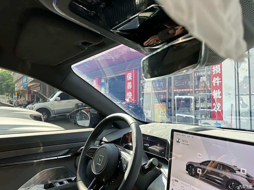 我选的是灰色的内饰,不得不说001的内饰是下了功夫的,翻毛皮,超纤绒的加上镀铬的装饰,高级感十足,也没有花哨的元素,一切感觉恰到好处,值得一提的是,新车里面完全没有异味,相当满意!