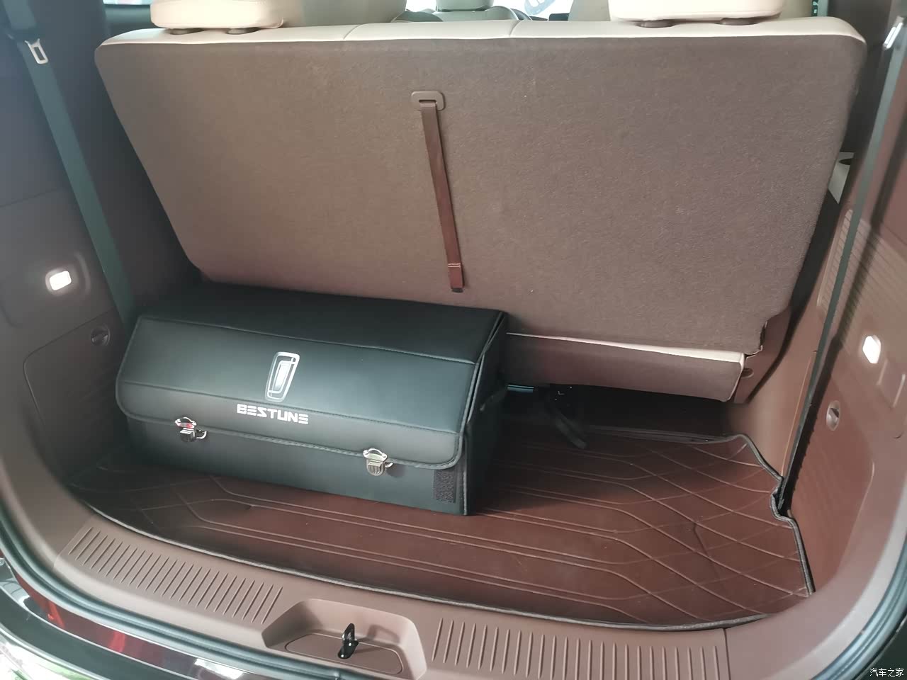 该说不说的奔腾M9不只是从外面看上去大,一坐进去更是感觉空间宽敞的很,本身奔腾M9就定位于中大型MPV,车身的长宽高分别是5280mm、2005mm、1945mm,轴距更是达到了3200mm,内部的乘坐空间相当宽敞,真不是一般轿车或者suv能比的,坐车的人应该比第一排开车的人舒服多了,后备箱的储物空间看着也够用,真不错。