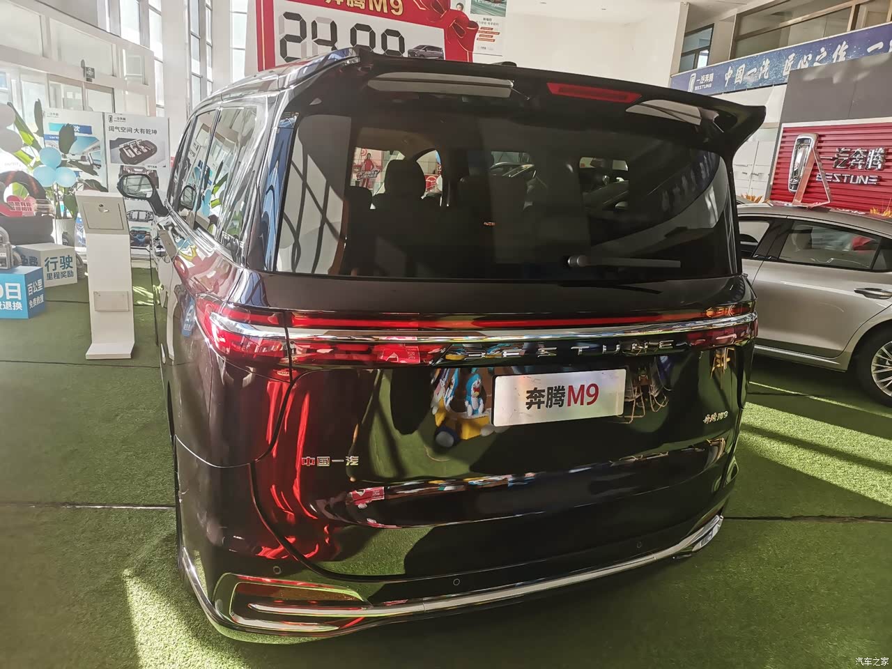 奔腾M9的外观看上去非常的大气,车头圆润饱满,横着的镀铬装饰条衬托的整个车头都很时尚,从侧面看整体造型非常的流畅,没有一丝丝多余的线条,尾部干净整洁,金属漆面反光下看着也挺好。