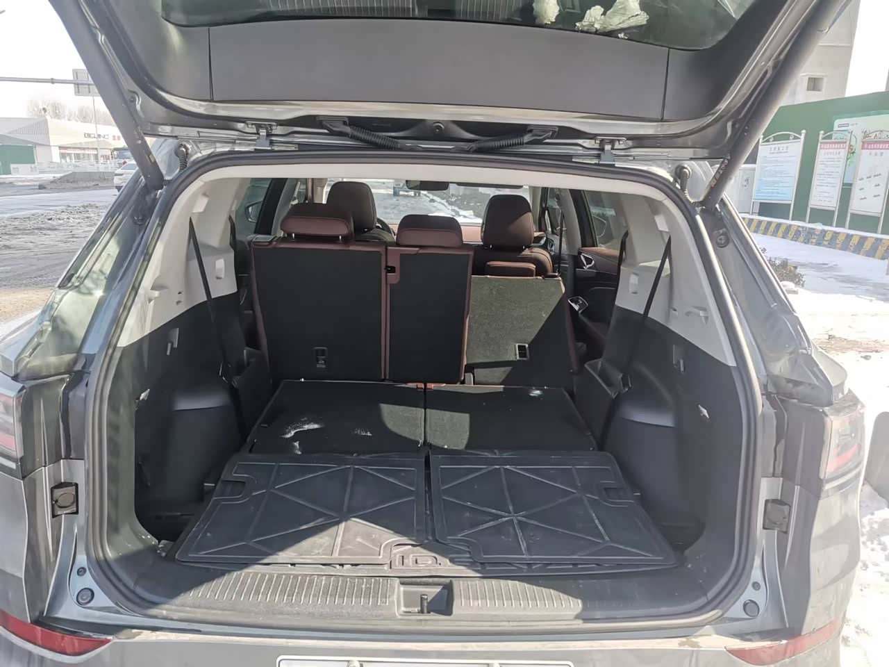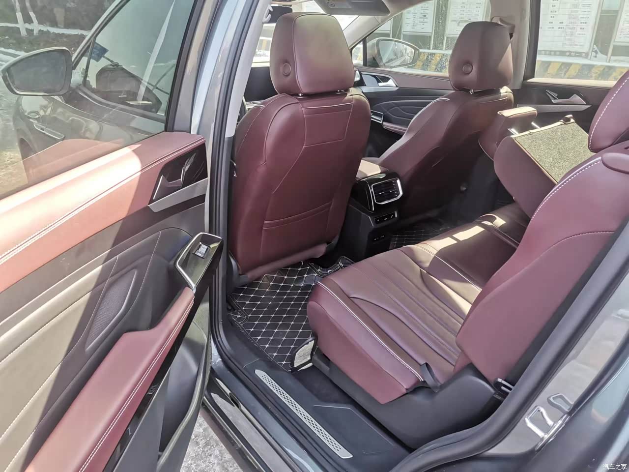 空间二排座椅可以翘二郎腿,打开三排座椅,大人坐上去有点卷缩,膝盖会比座椅高,不舒服,坐孩子是没问题。 后备箱,可以由202升,扩大到1820升,装货非常便利。