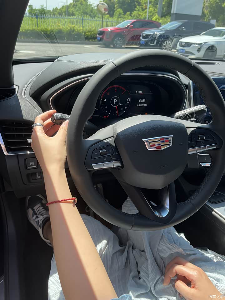 最满意的是车子的外观,加上颜色加持,黑色的CT5气场很强,女生开黑色CT5很飒。之前也是迷茫的试驾了很多车,同级别的奥迪、林肯、奔驰、丰田、本田都试驾过,凯迪拉克CT5是在家附近试驾的,感觉很不错,厚实、厚道、动力充沛,23款的全液晶仪表盘真的拉高了不少档次,运动感十足。最后在端午节的宁波国际车展上,找老朋友下定了23款豪华CT5,没有加装BOSE,加装了360。这样开车转弯倒车的时候可以直观点看到周围,毕竟肉眼看肯定会有死角,这就可以让我省心不少,也算是辅助我驾驶了。