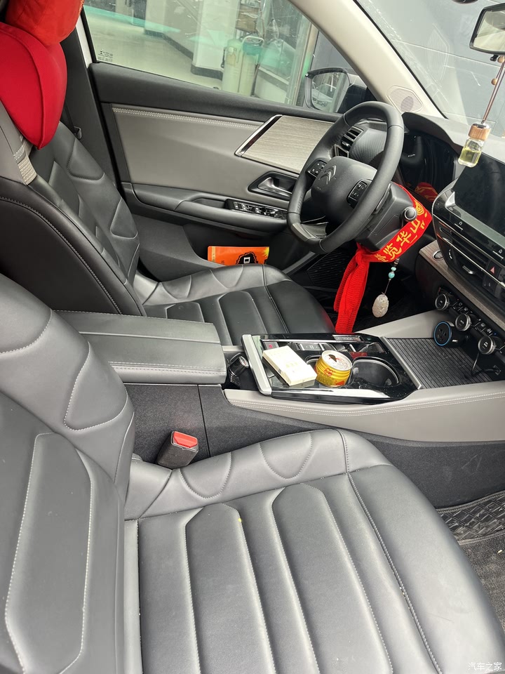 整体感觉还是挺简洁的,是我喜欢的风格,电子按键换档,节省空间,也比较科技化,我买的是享不凡,搭载的是10英寸的悬浮式彩色高清触摸显示屏,就是液晶仪表有点小,只有7英寸,赛车小幅式方向盘不仅小巧好用,转弯半径小,而且还上不挡视线,下不挡空间。内饰做工比较精细,能摸到的地方几乎都是软包,中控台上布满了雪铁龙的logo,座椅、车门上有的缝线也体现出了雪铁龙的logo,细节感满满。