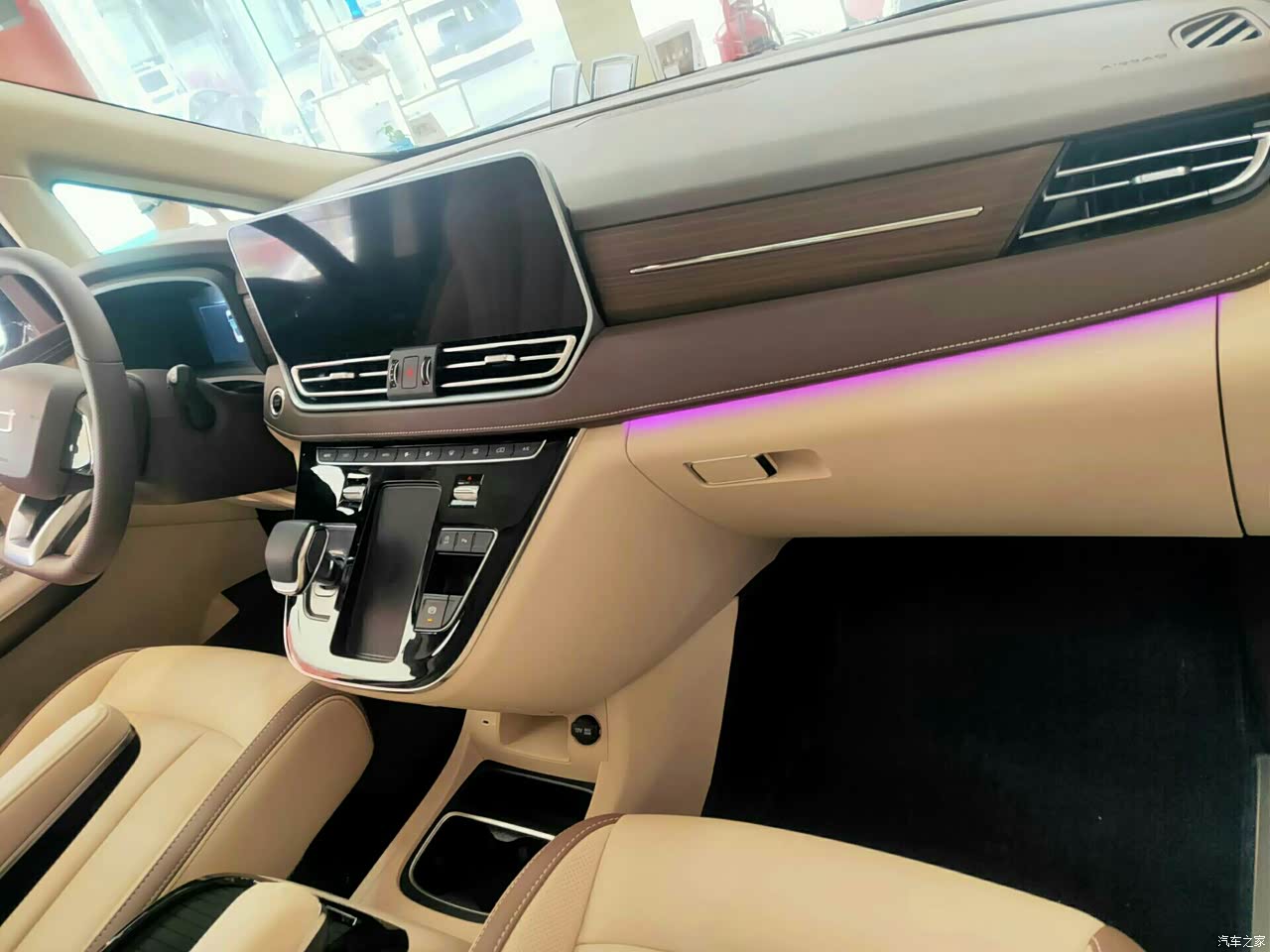 内饰方面,这车子的内饰设计看起来挺豪华的感觉,是mpv该有的样子。内饰用料很不错,软包的手感很好,最舒服的就是二排的设计了,座椅舒适,功能齐全。第三排也有专门的出风口设计,这点很不错,第三排的舒适性就会提升很多。