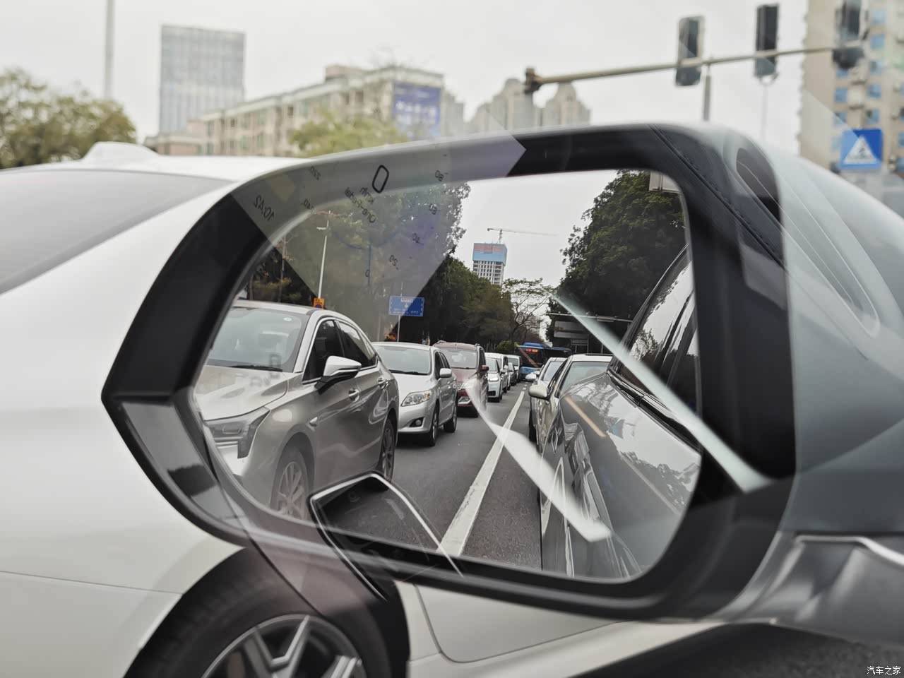 车辆的外观非常大气。流线型好。尤其是侧面看,非常的厚重。而且底盘较高,通过性较好,是一部很好的跨界车。和其他车并在一块都显得特别大。