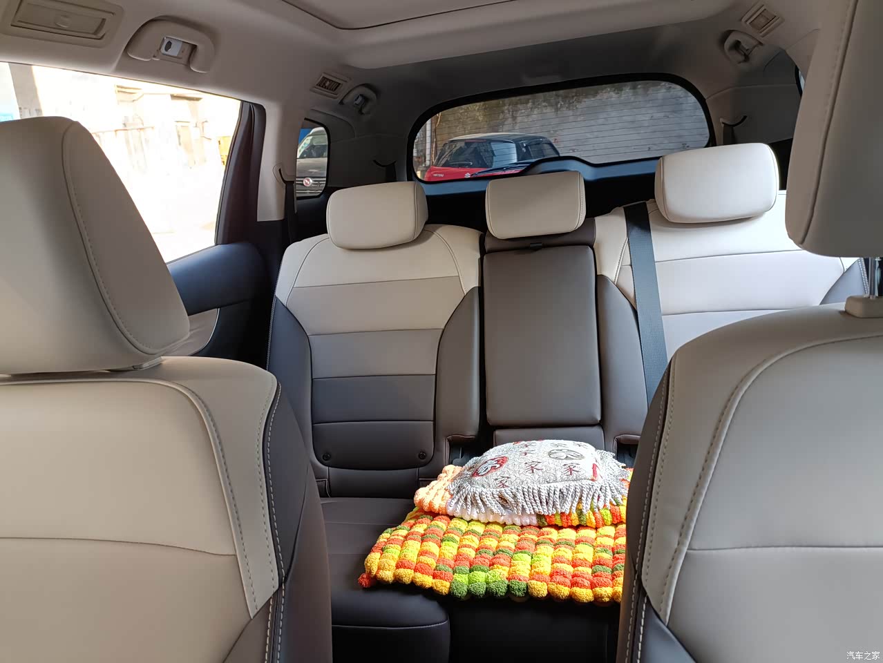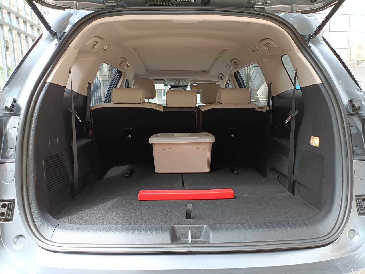坐5人时行李厢够大,坐7人尾箱剩30厘米左右基本没地方放行礼。第二排朝前放平后车内成张床了。