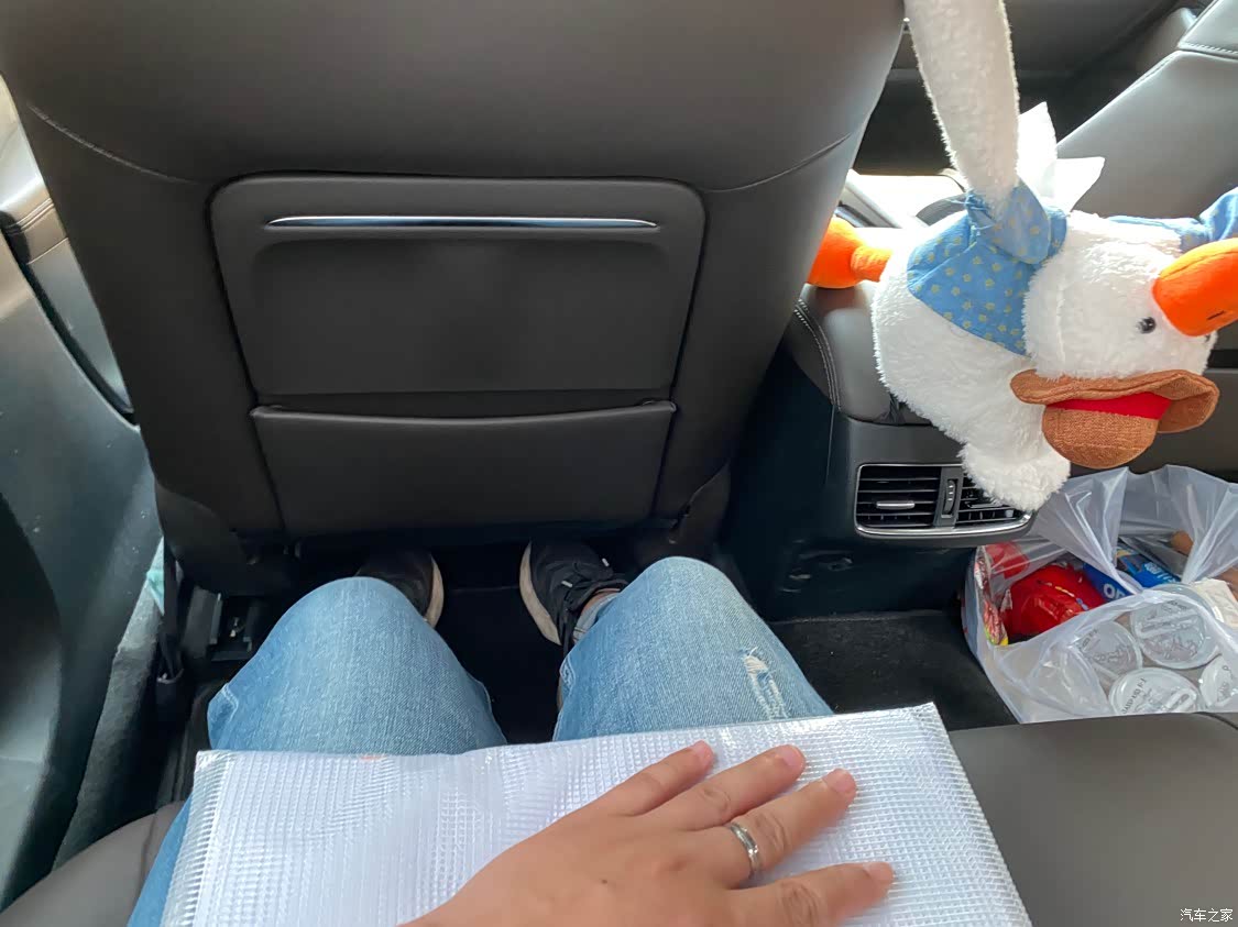前排调好驾驶位置后,后排空间约三拳,空间还算够用,但绝对不能用大来形容。相对车内乘坐空间而言,后备箱的空间可以说是巨大,比同级别的日系车都能装。