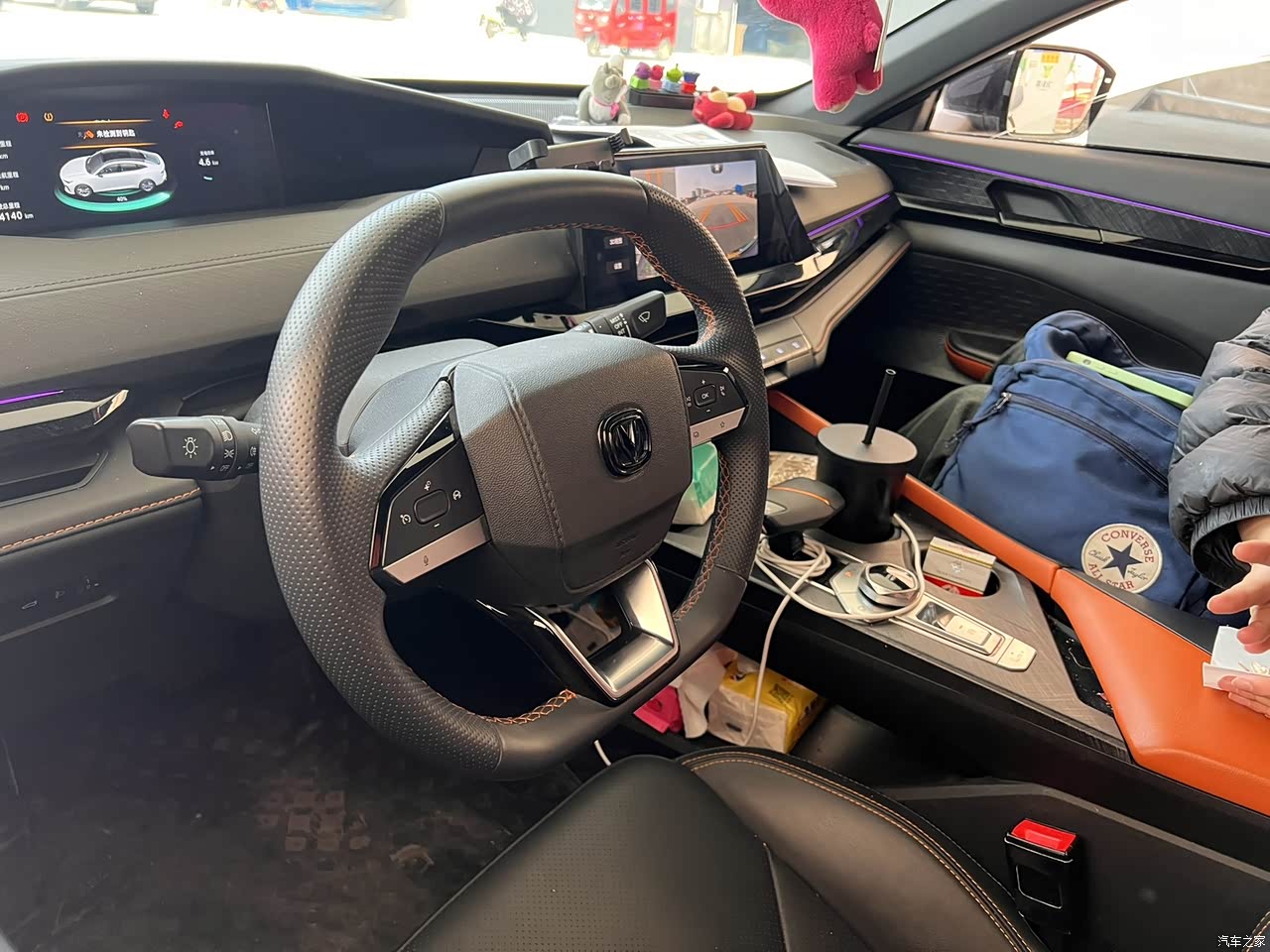 顿挫感低,1.5t的发动机,我觉得它动力输出还是比较充沛的,而且就算发动机介入,它的动力输出还是比较充沛的。 因为纯电的续航还是可以的,所以日常短途通勤使用还是用电比较多。电车的驾驶感受就比较明显的要高于用油时的驾驶感受,它提速会更快一些。然后方向盘也比较轻,会更贴近于轿跑的一个设计。