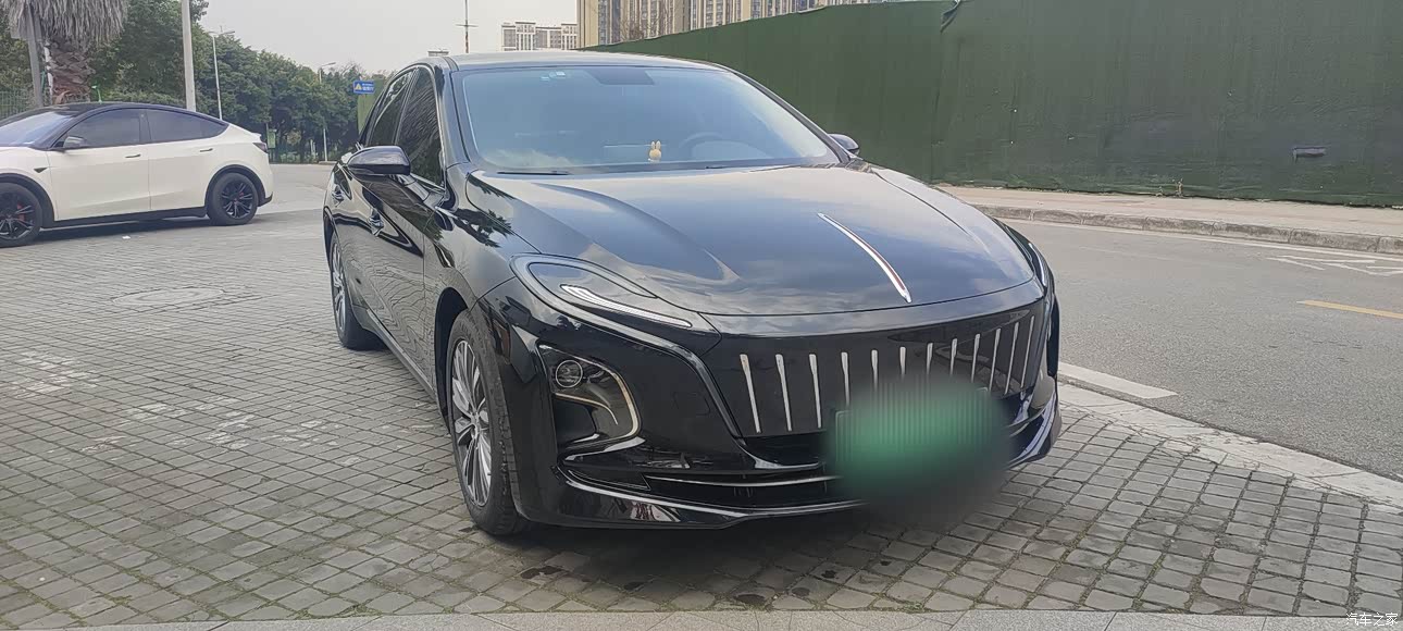 车外观及内饰都选的黑色,个人觉得,前脸大气,亲身感受一汽红旗品牌对车身品控还是非常不错,车头采用了与其它红旗不一样的独特的立体式格栅设计,前后两侧搭配LED大灯,腰线流畅而动感,侧看车身还是不错的。
