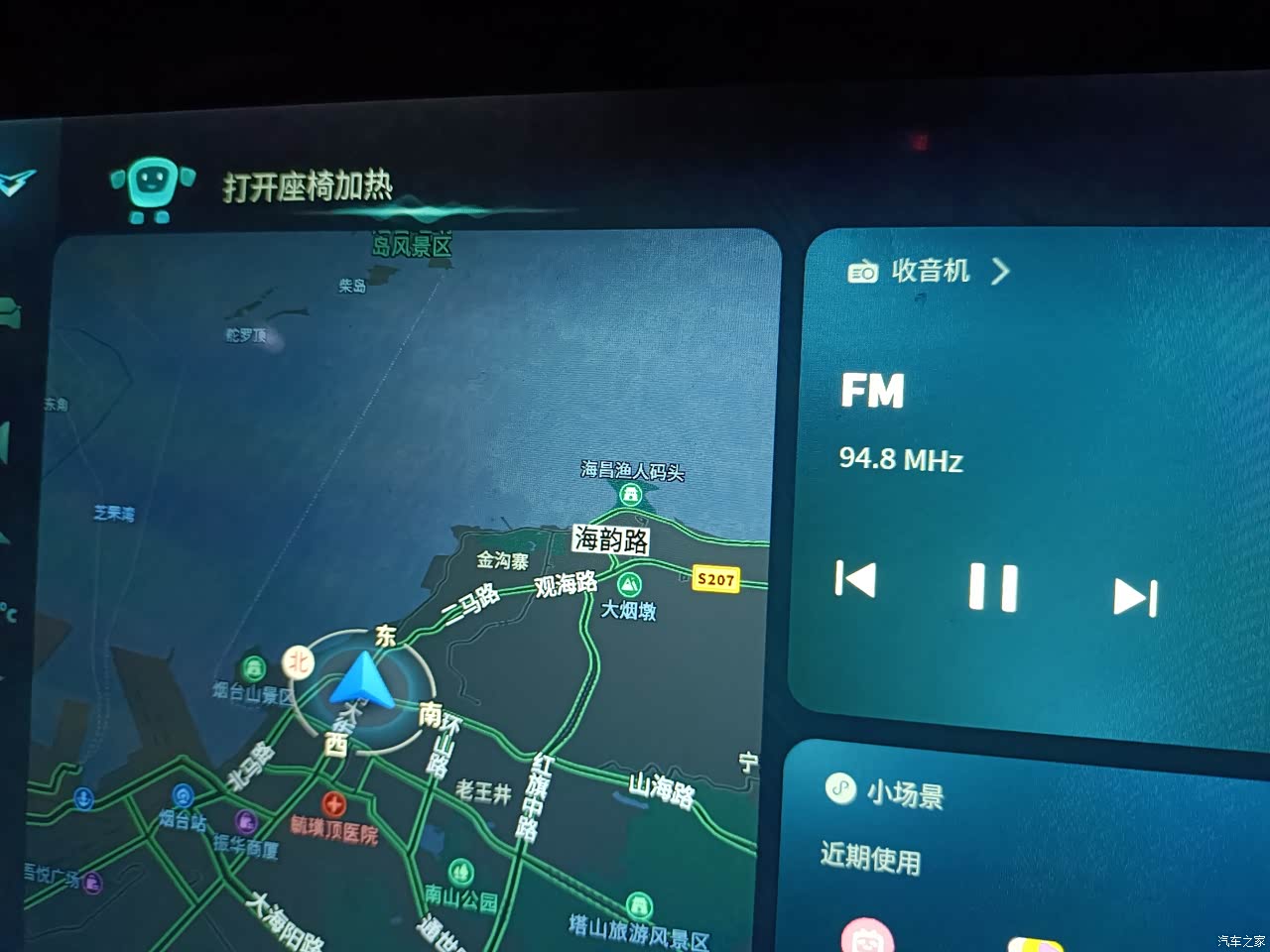 按照专业来讲,这车属于中型SUV标准,轴距2820cm就决定了后排乘坐空间还是可以的,我身高一米七七,体重230斤坐后面距离前排座椅还能剩7㎝。中控大屏接近13寸,个人觉得够用,而且比较人性化偏向于驾驶人方向,避免了太阳光折射刺眼睛。车上储物空间设计还算合理,特别是那个前排两个座椅中间储存箱与空调风道连在一起,夏天和饮料很给力。