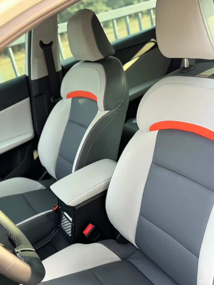 内饰方面,MG4 EV相对简洁,浅色的内饰搭配橙色的拼接,清爽中更带一丝活力;中控台布局简洁明了,没有其他干扰,开起来很安心。内饰的材质摸起来还是很有质感,听说用料符合欧盟法规,车内也无异味感,健康环保。值得一说的是,MG4 EV座椅舒适啊!长途驾驶也不会感到疲劳。
