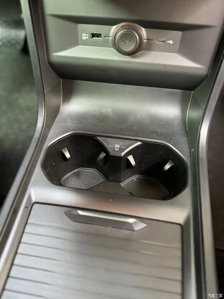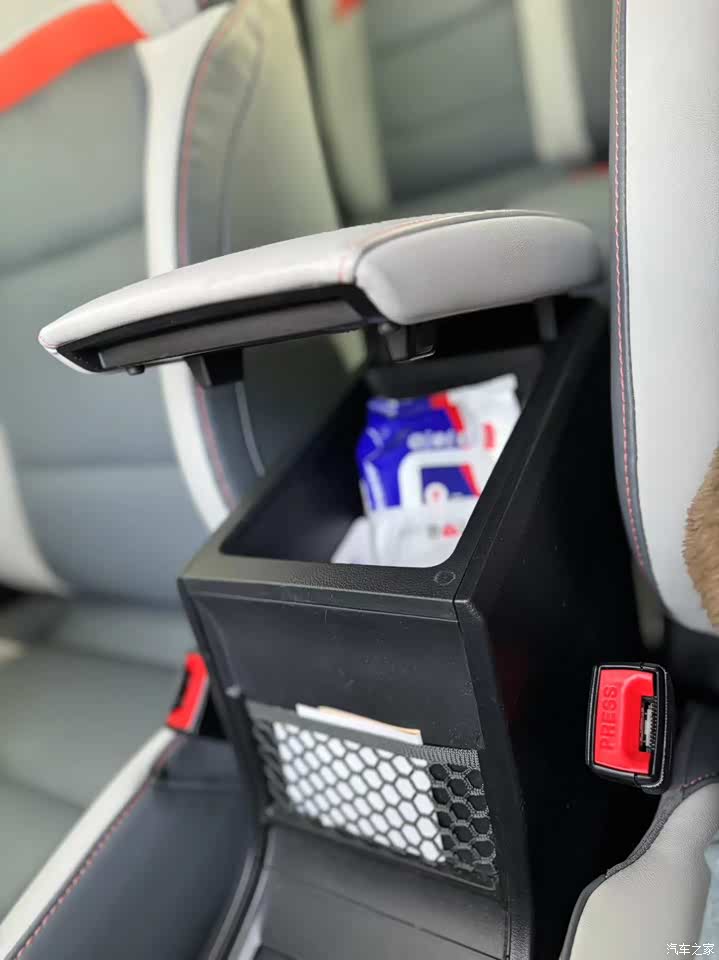 整体储物空间还是比较多的,中控部分镂空可以放包和咖啡,这里还做了一个咖啡的小标志,符合都市白领的精致生活;扶手箱、后排座椅的储物袋等小空间增加增加了日常的便利。