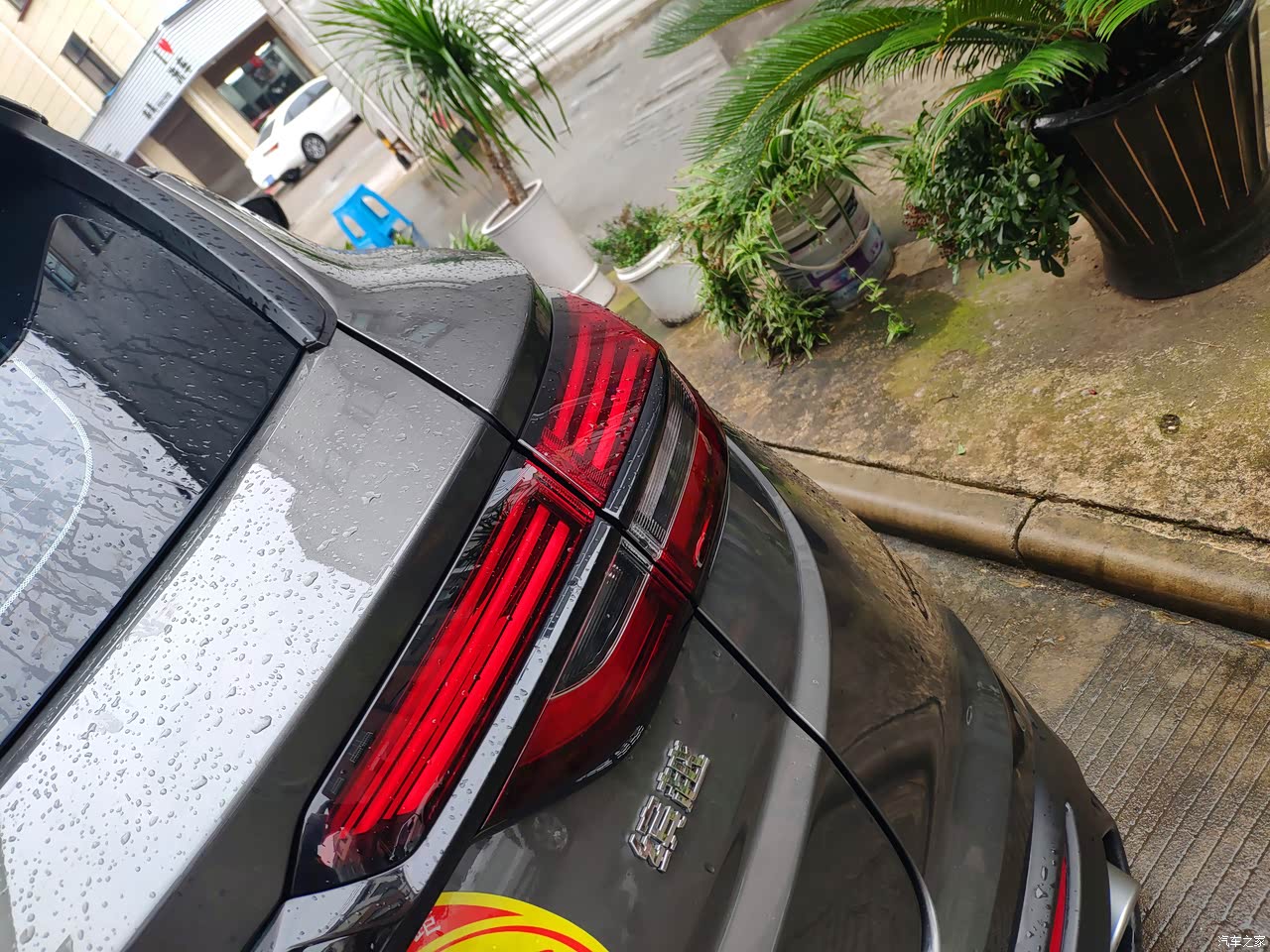 样子是偏运动类型的,后面的尾灯和凸起的小尾翼这些。灰色的车漆不显脏但是看着还是很有质感的。