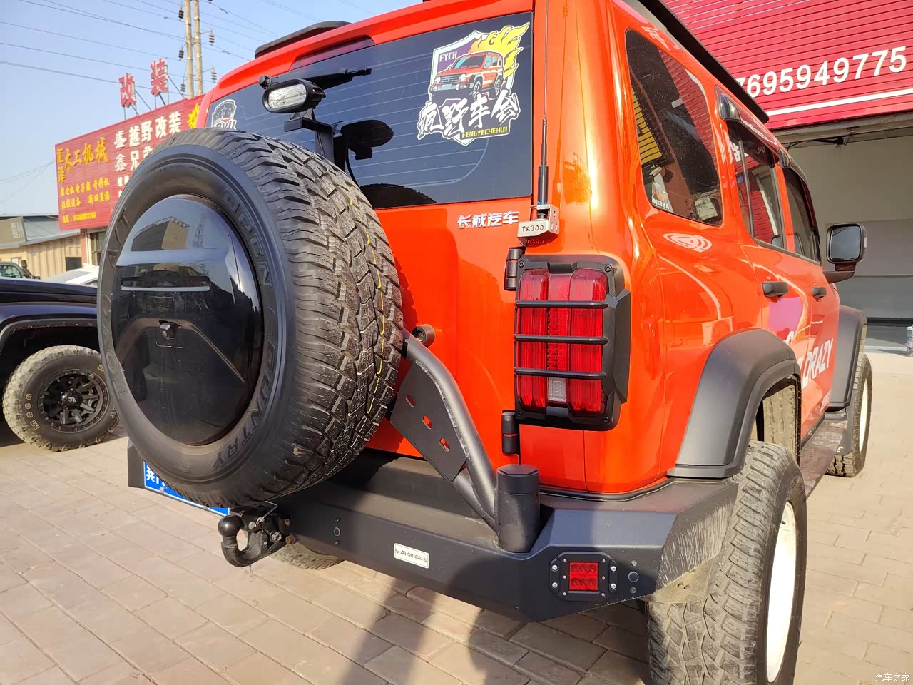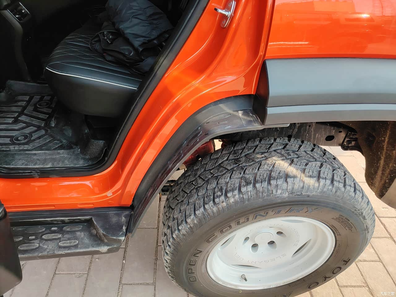 后门开开以后,轮胎直接漏在外面,希望原厂配好挡泥板!自己改太麻烦了。还有就是原厂灯光比较一般,夜间打开真是看不太清。远光更没法提了,所以我才装了点辅助灯,已经备案了,希望以后灯光效果有所改进一下。
