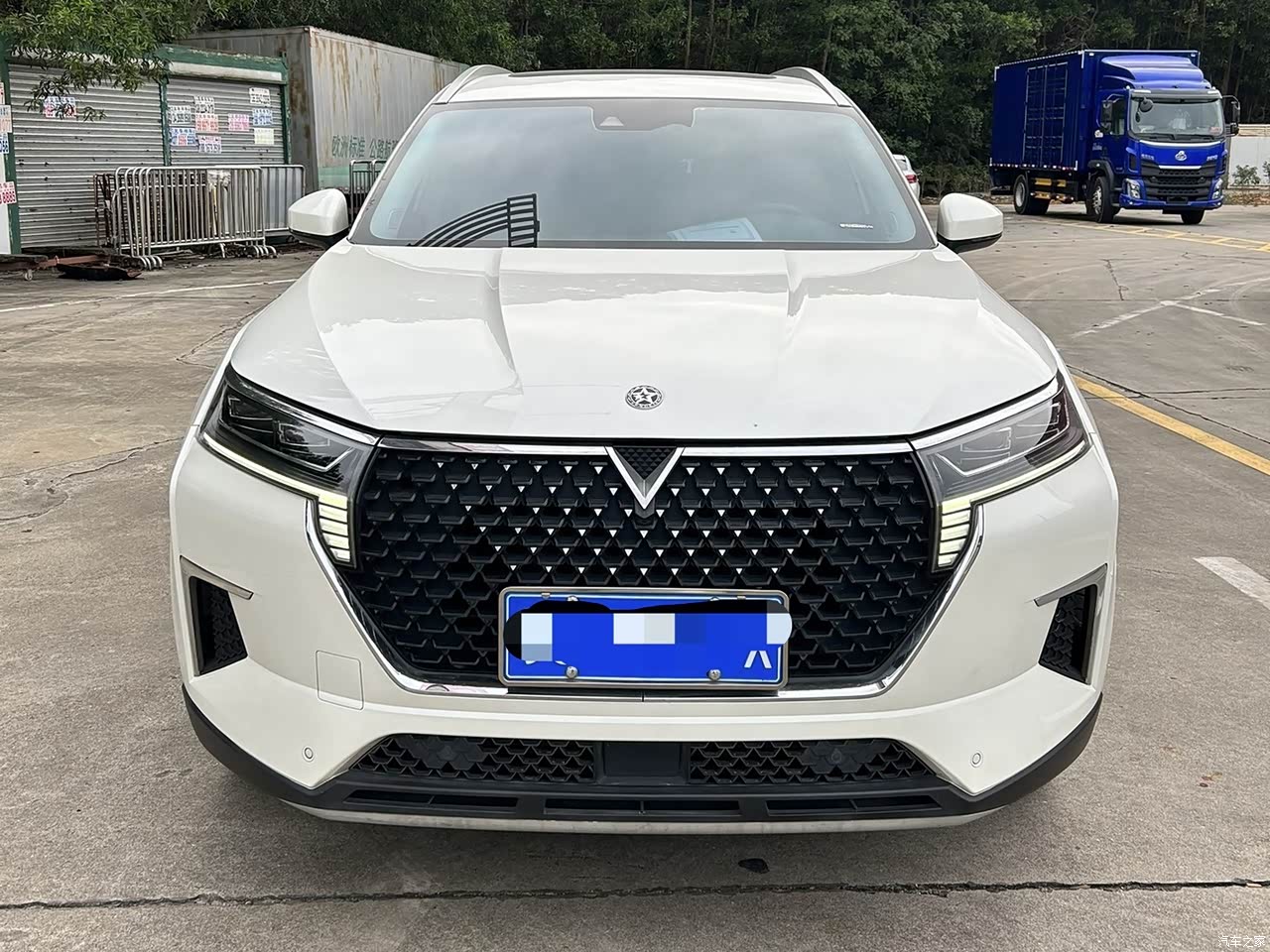 镂空设计,霸气的黑色大前脸,识别度非常的高,中间是镀铬的V字车标造型也非常醒目。